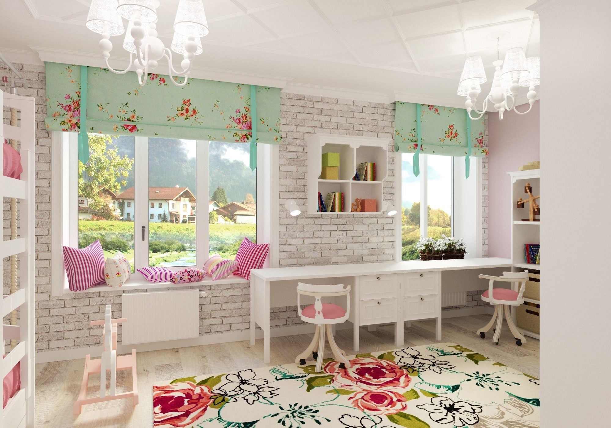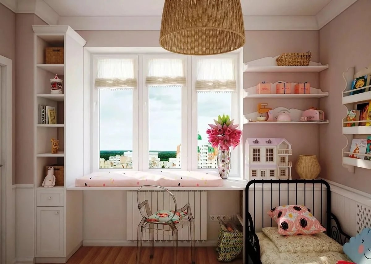 Детская для девочки с большим окном