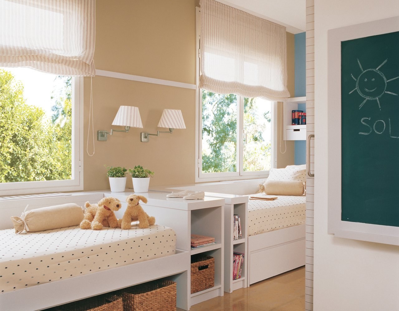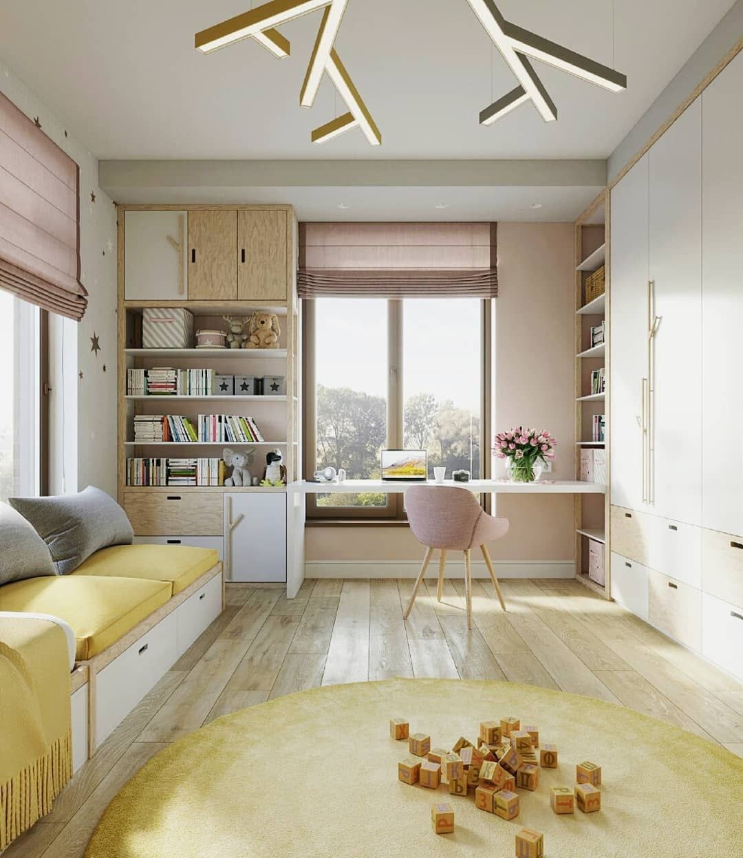 Детская комната с двумя окнами