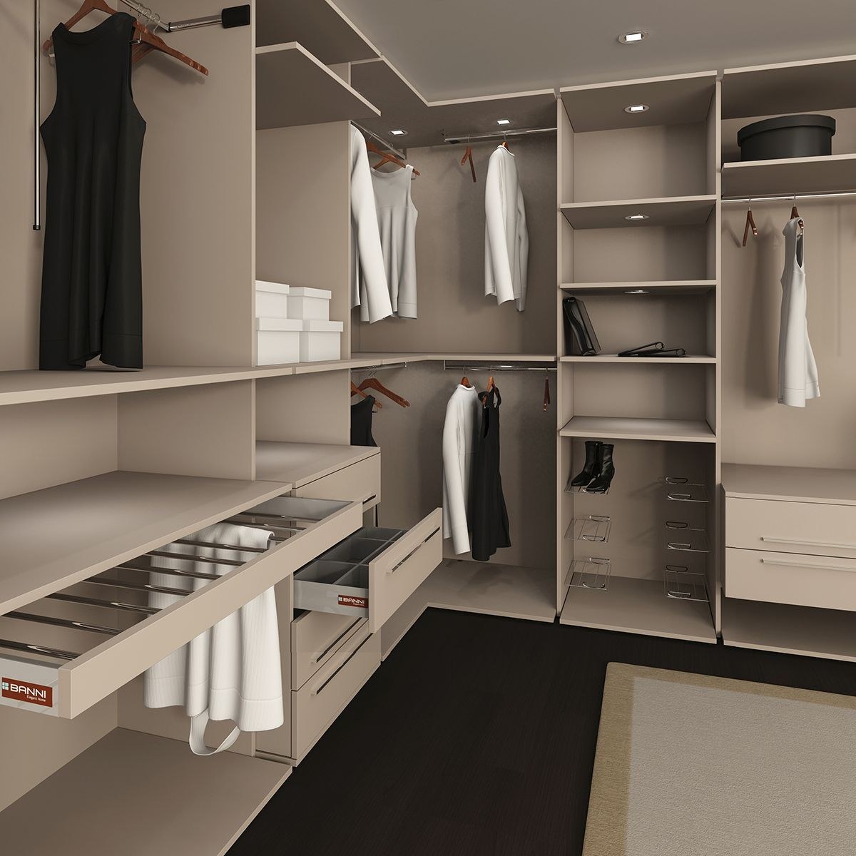 Угловые системы хранения для гардеробных шкаф