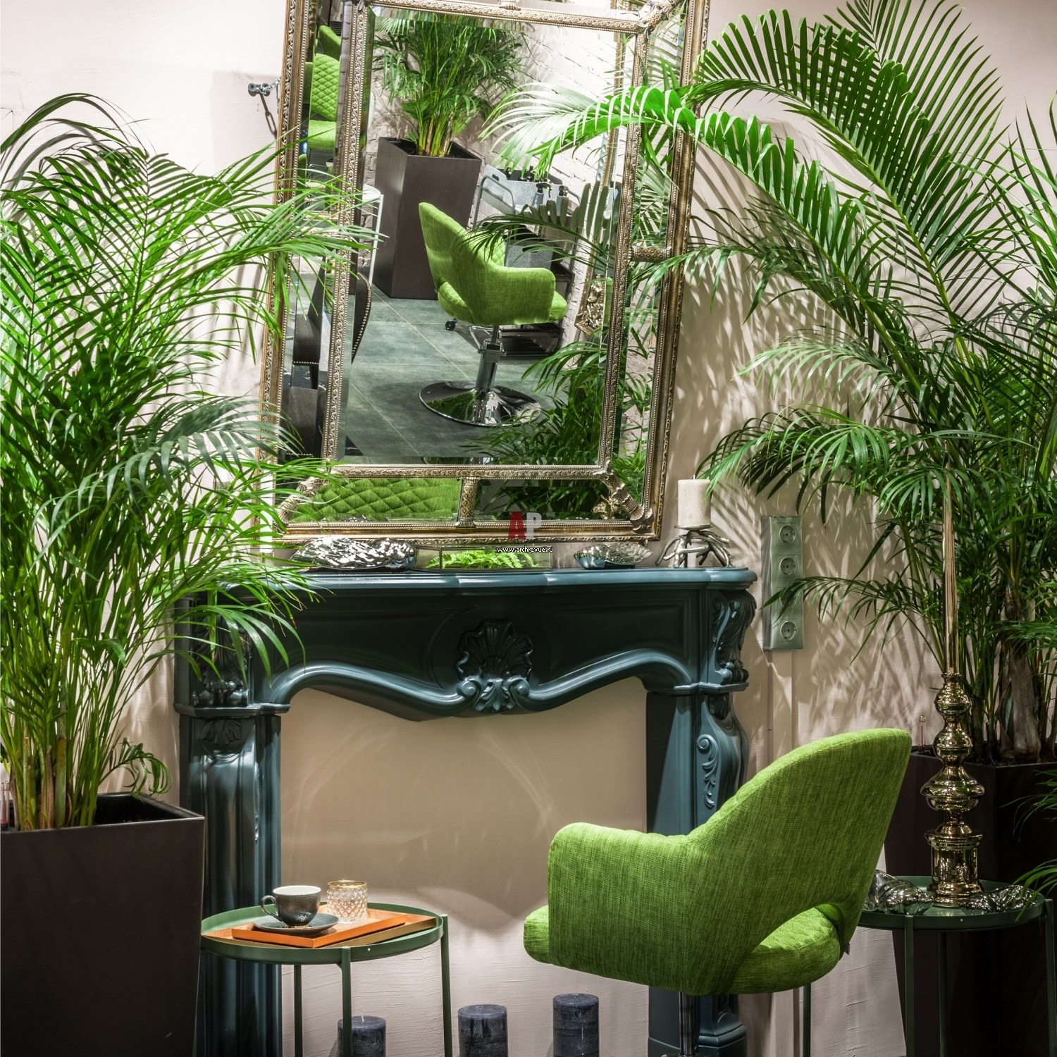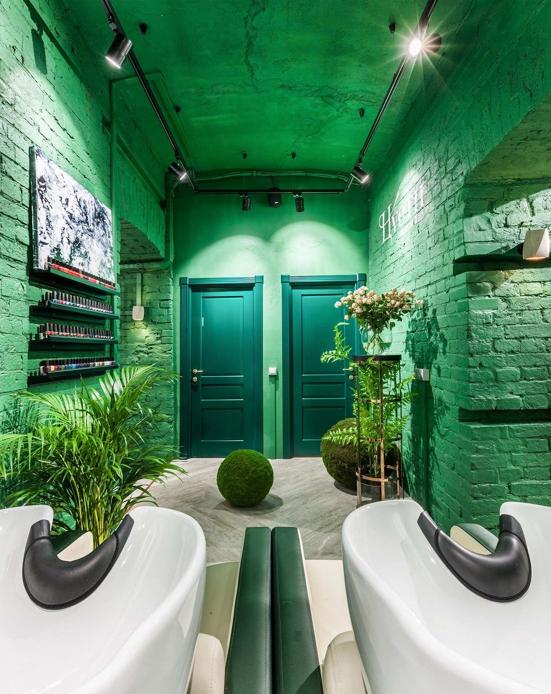 Изумрудный цвет в интерьере салона красоты