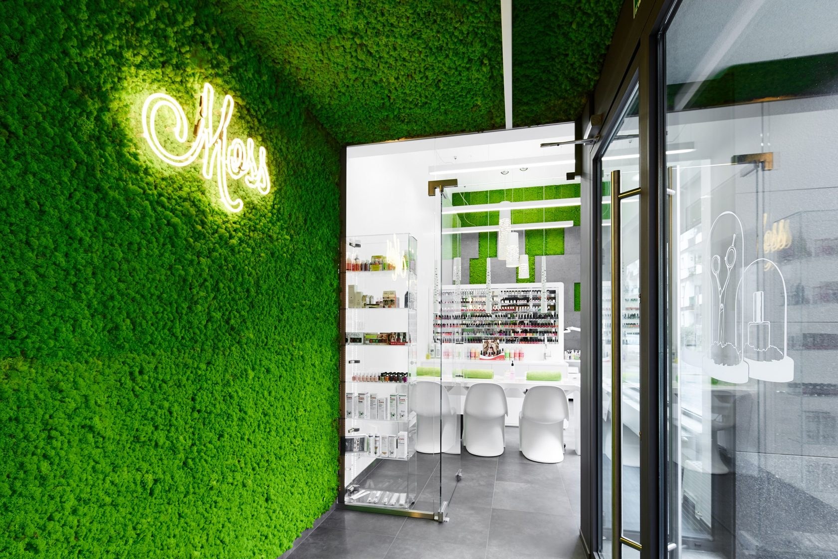 Интерьер салона красоты с зеленью