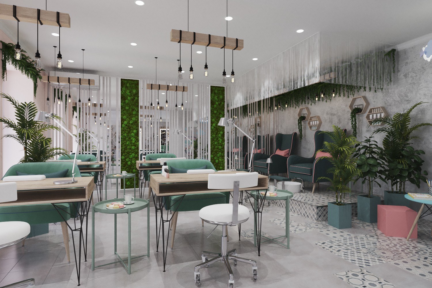 Интерьер маникюрного кабинета зеленые тона