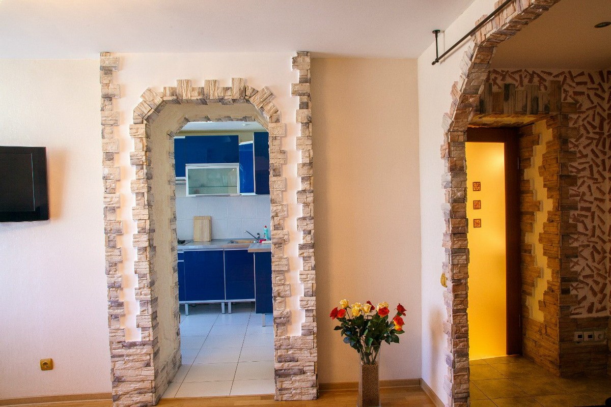Декор арки декоративным камнем