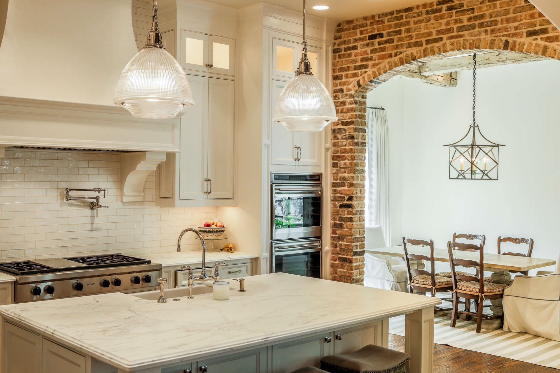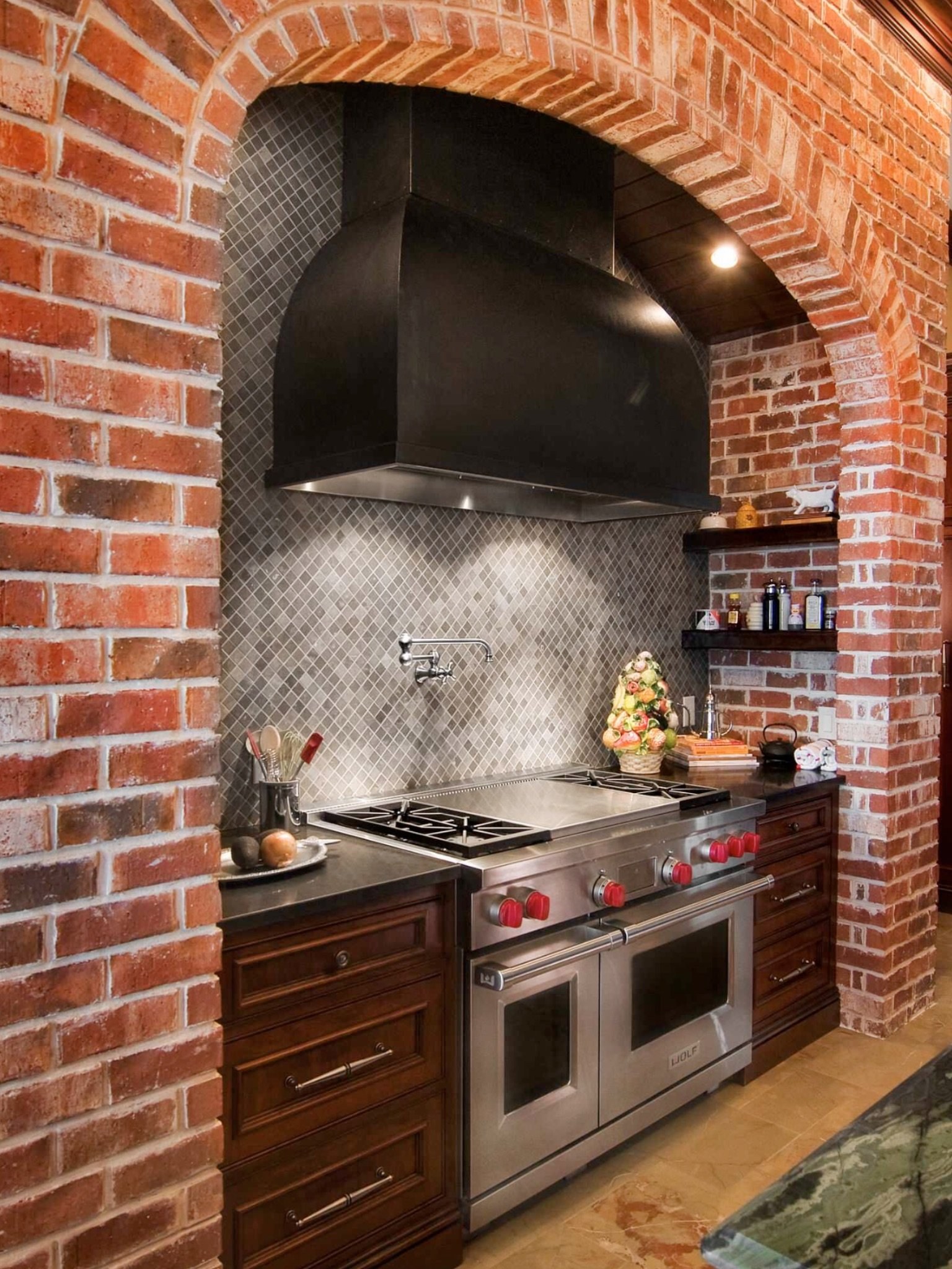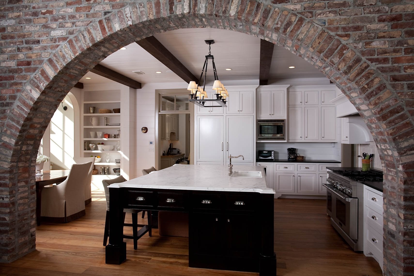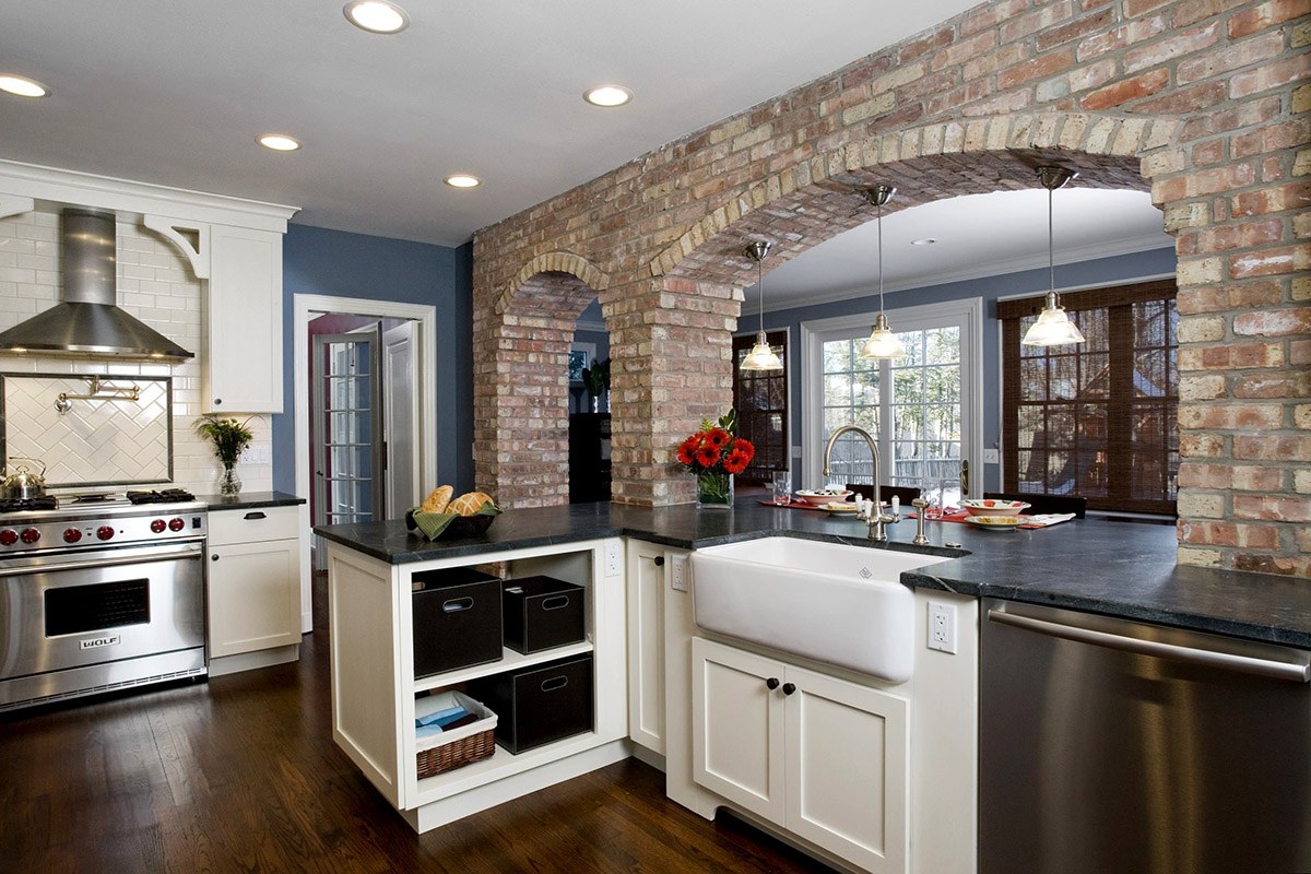 Арка из декоративного кирпича на кухне