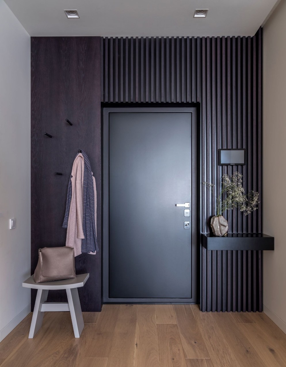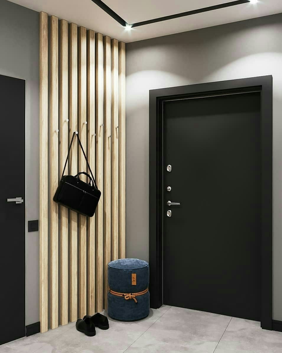 Прихожая с рейками на стене