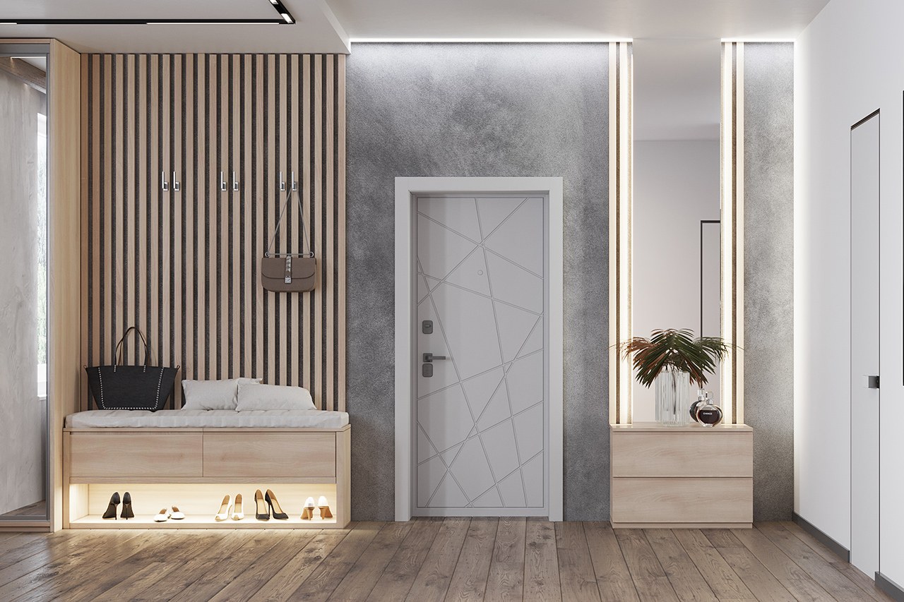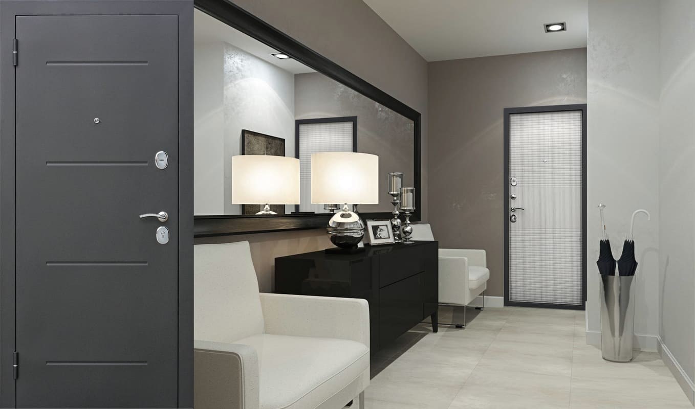Серая входная дверь в интерьере (81 фото)