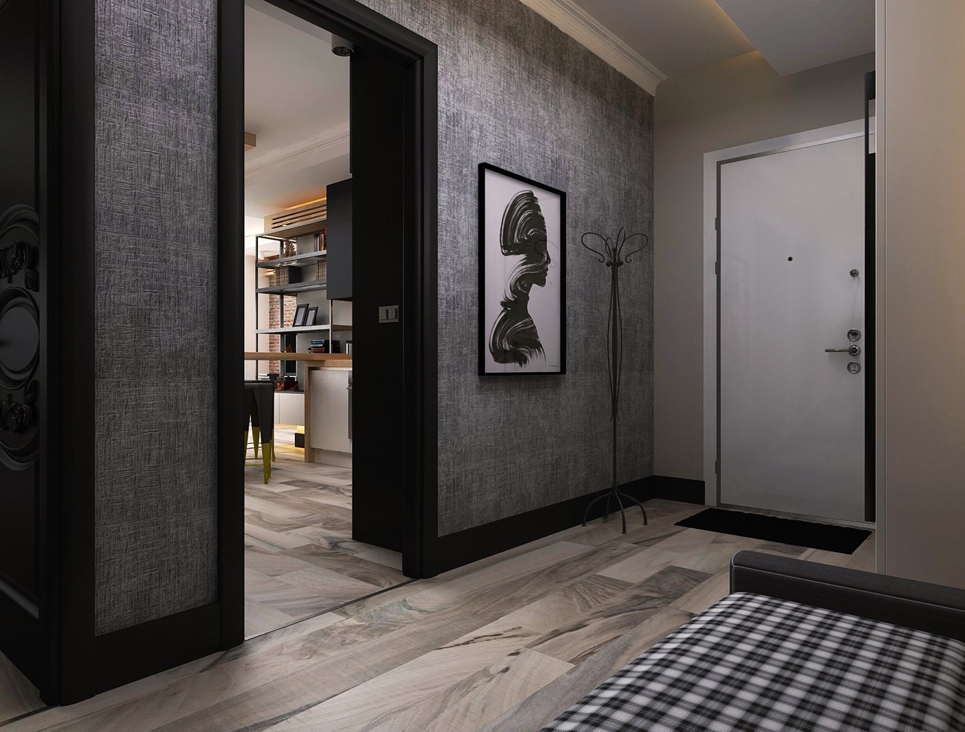 Черная входная дверь в прихожей