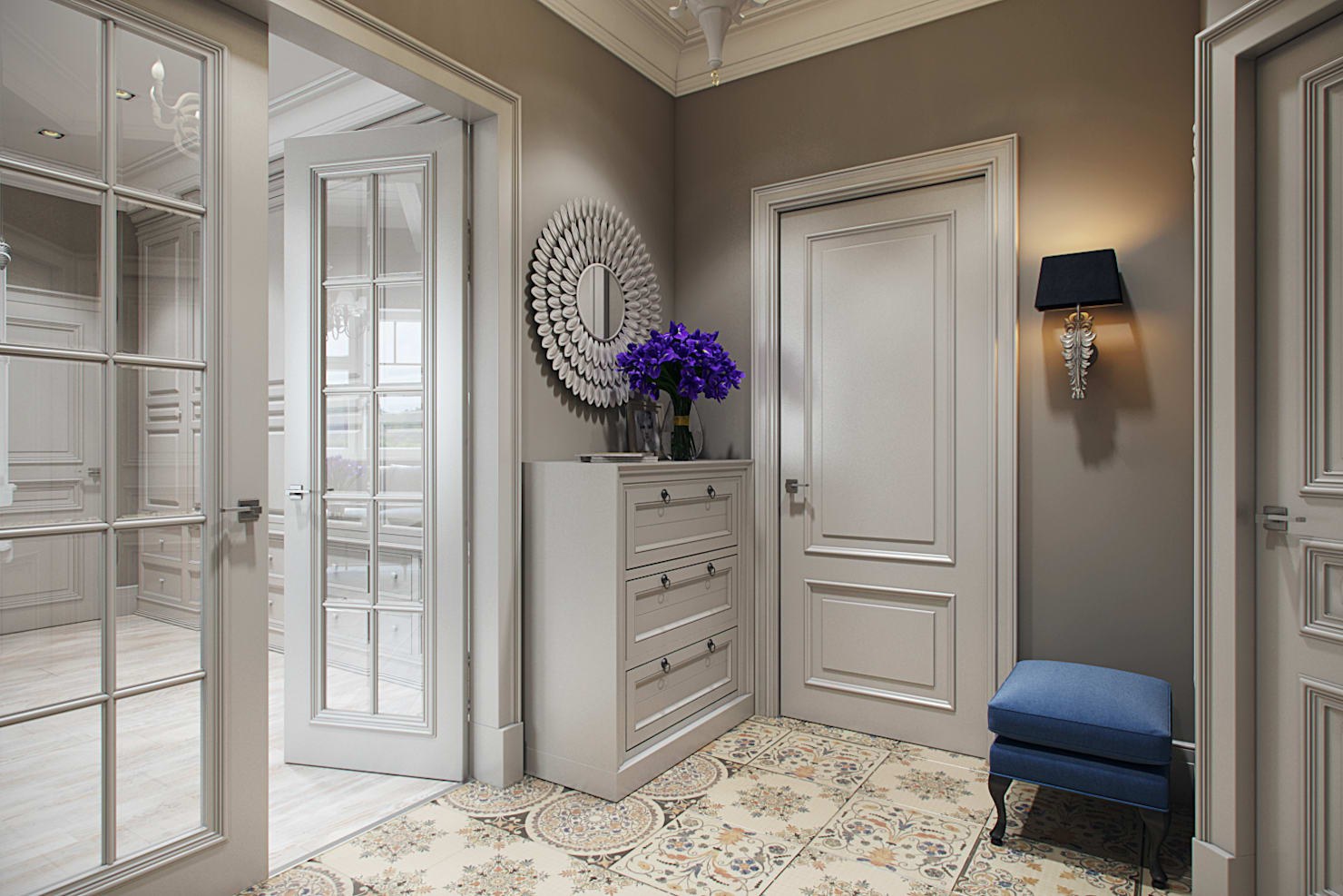 Прихожая с серыми дверями