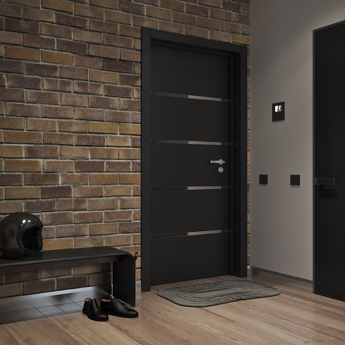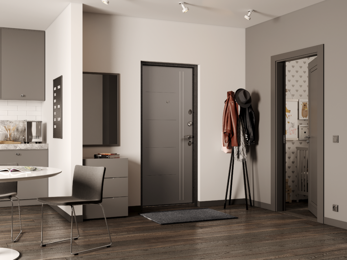 Темно серая входная дверь в интерьере