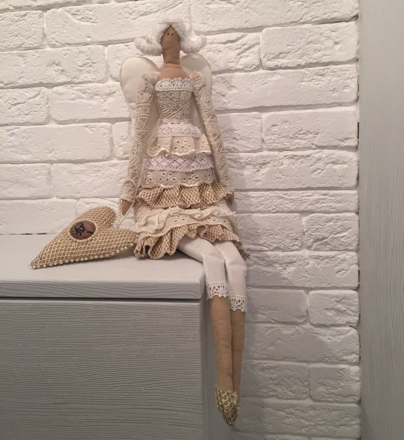 Кукла Тильда на стене в интерьере