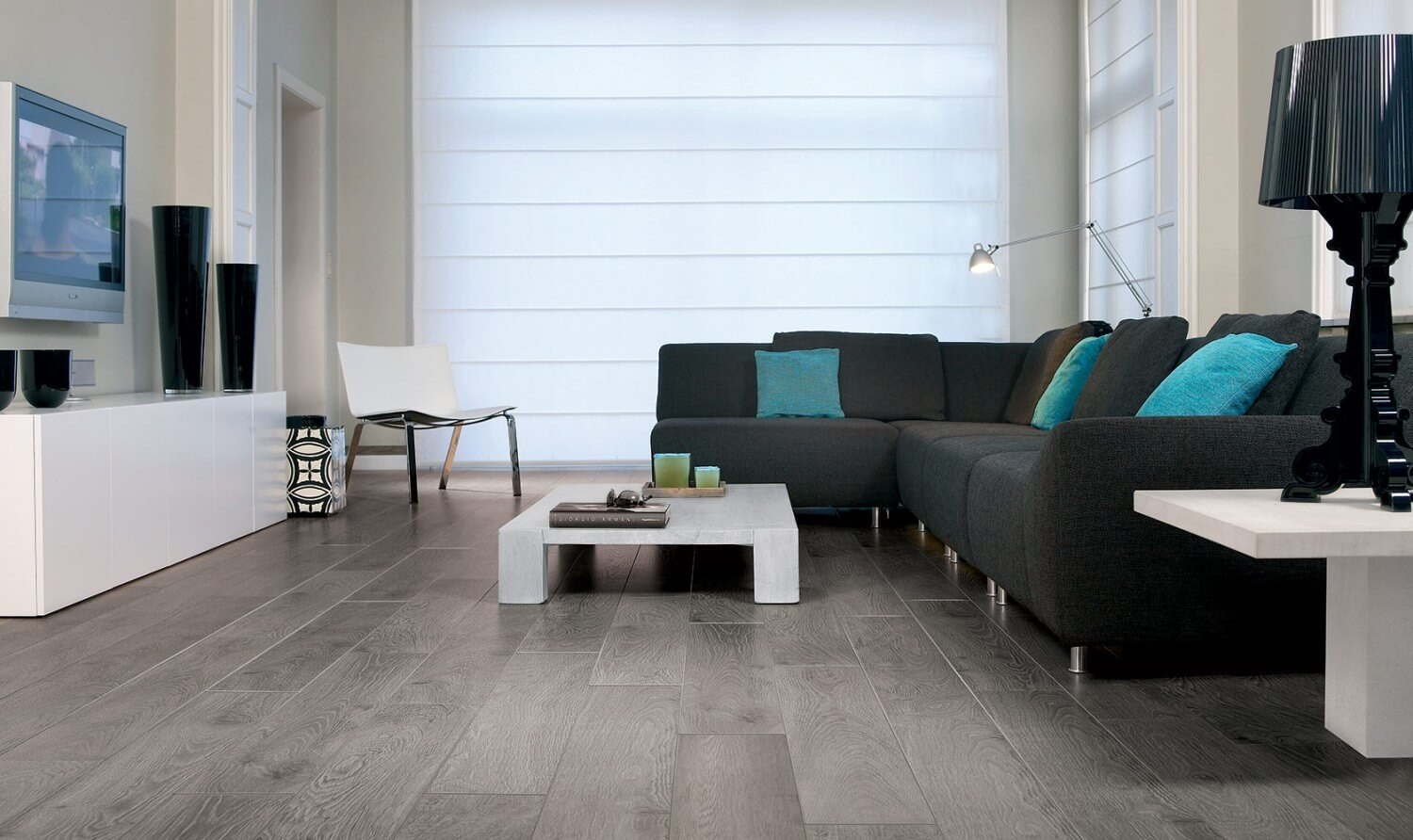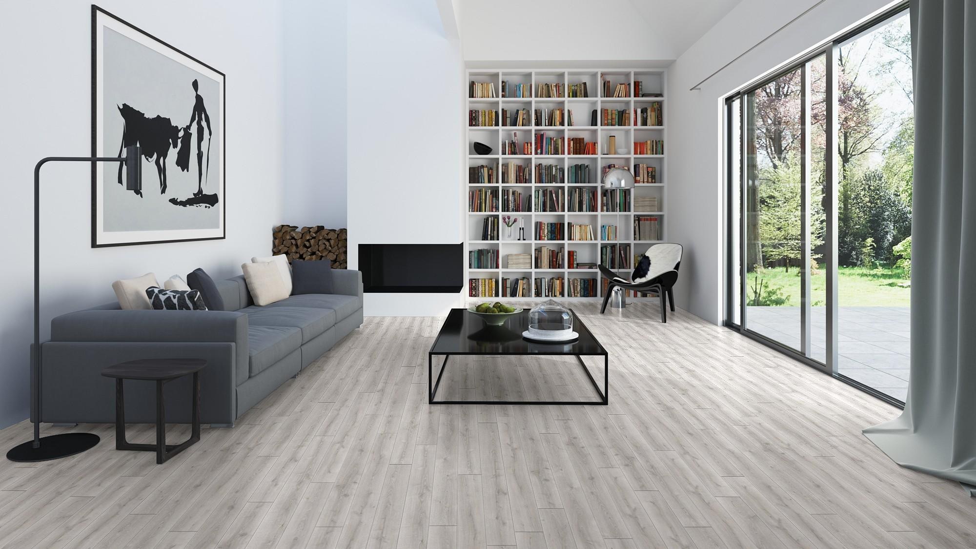 Ламинат серого цвета под дерево в интерьере (75 фото)