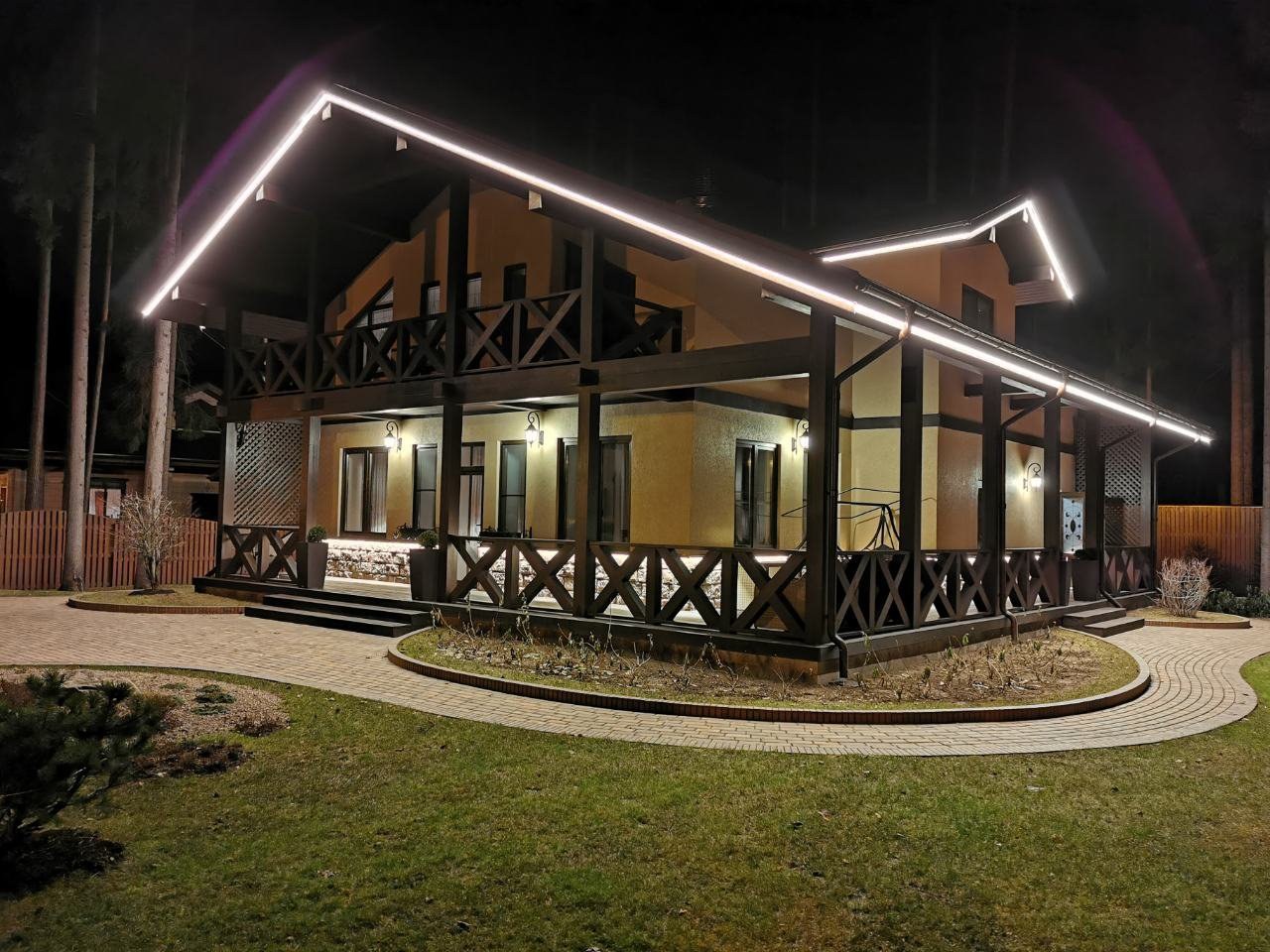Подсветка фасада дачи