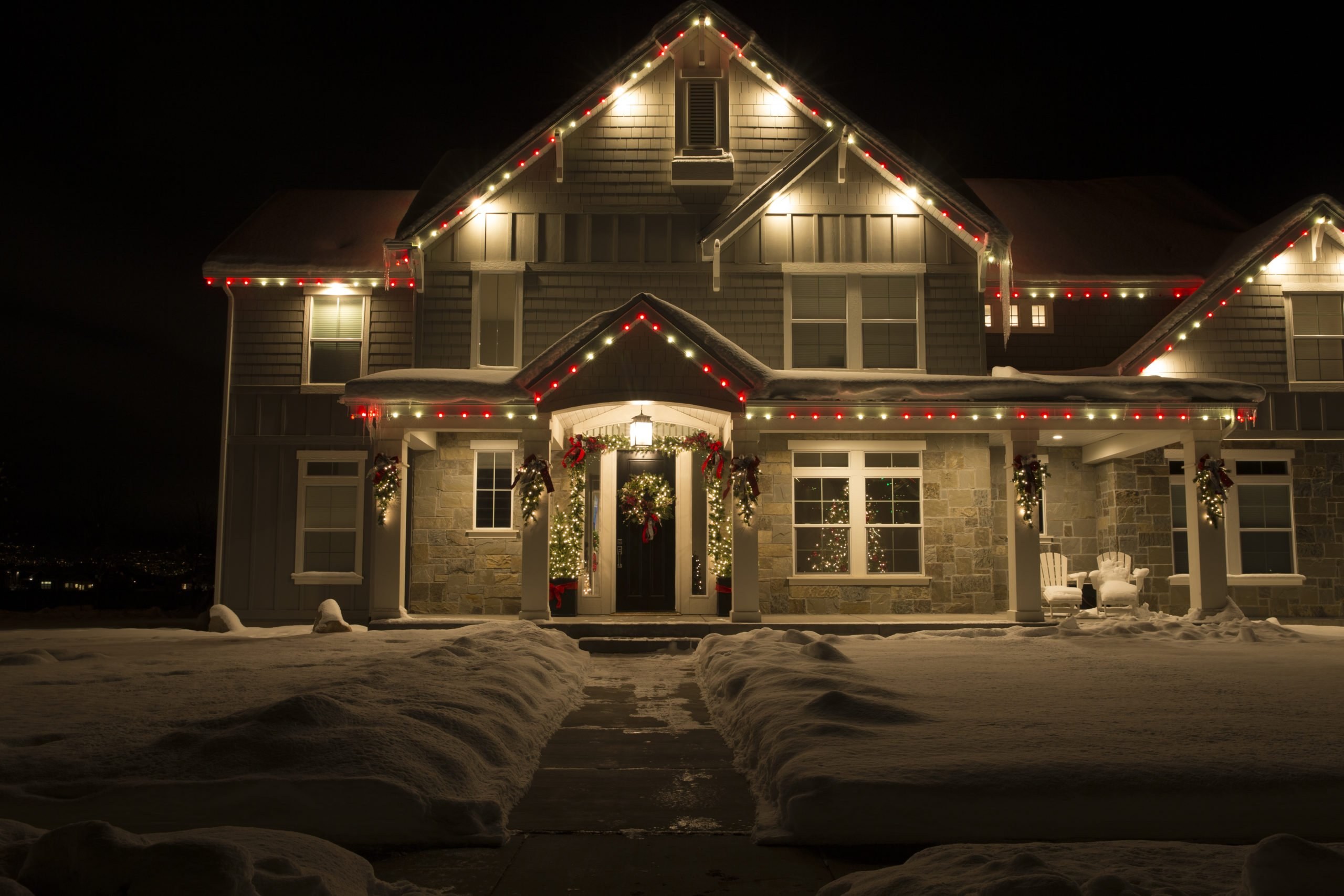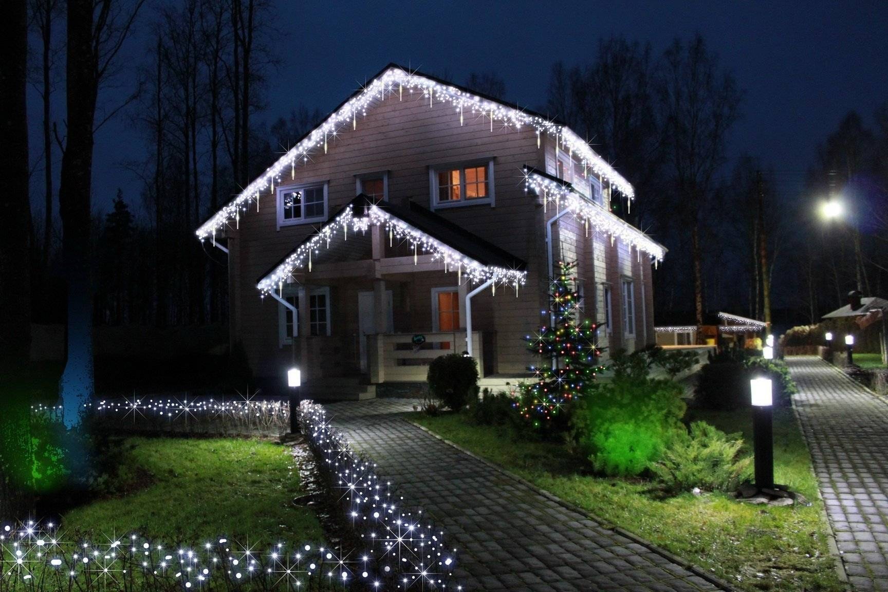 Украшение фасада дома на новый год
