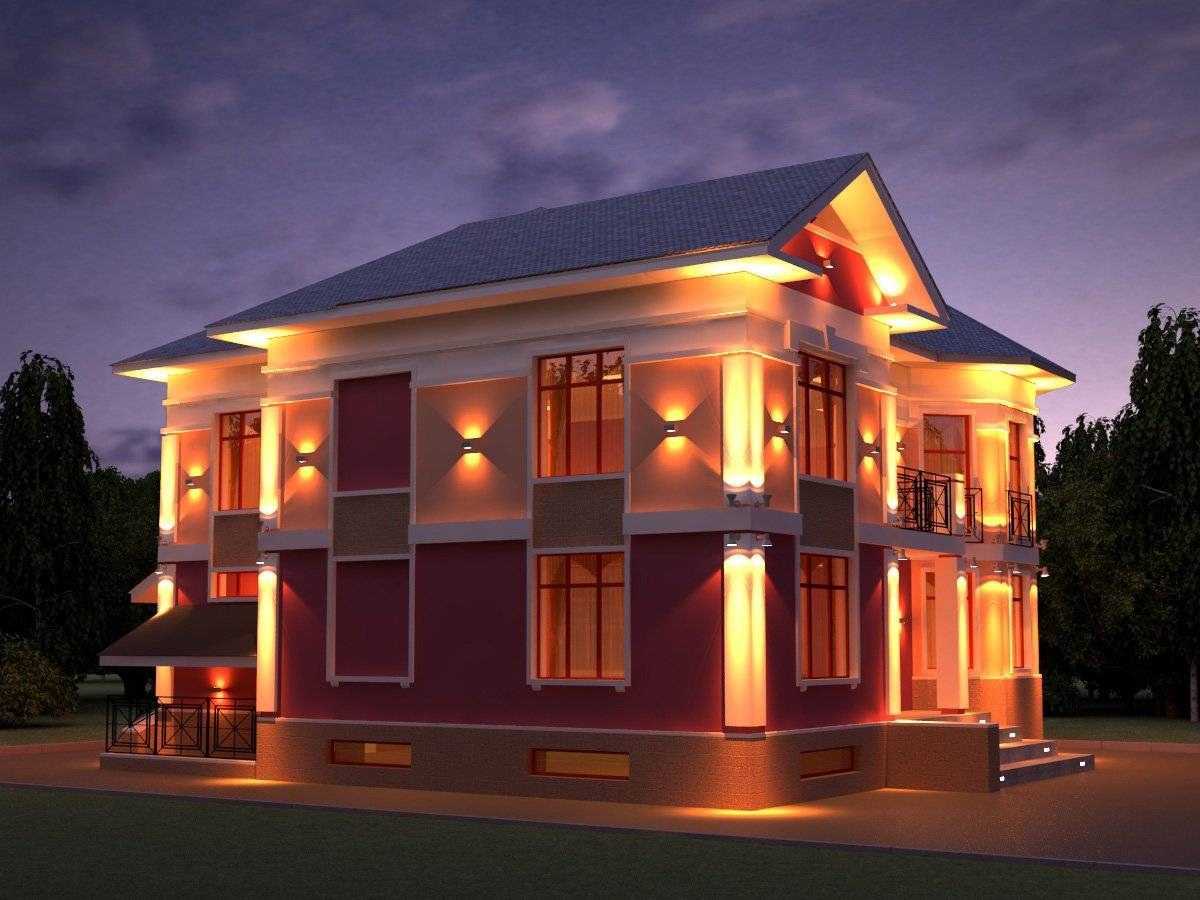 Освещение фасада частного дома
