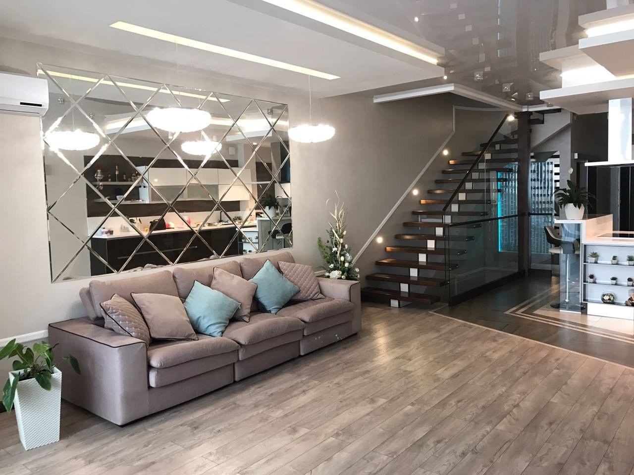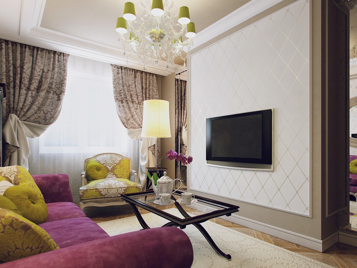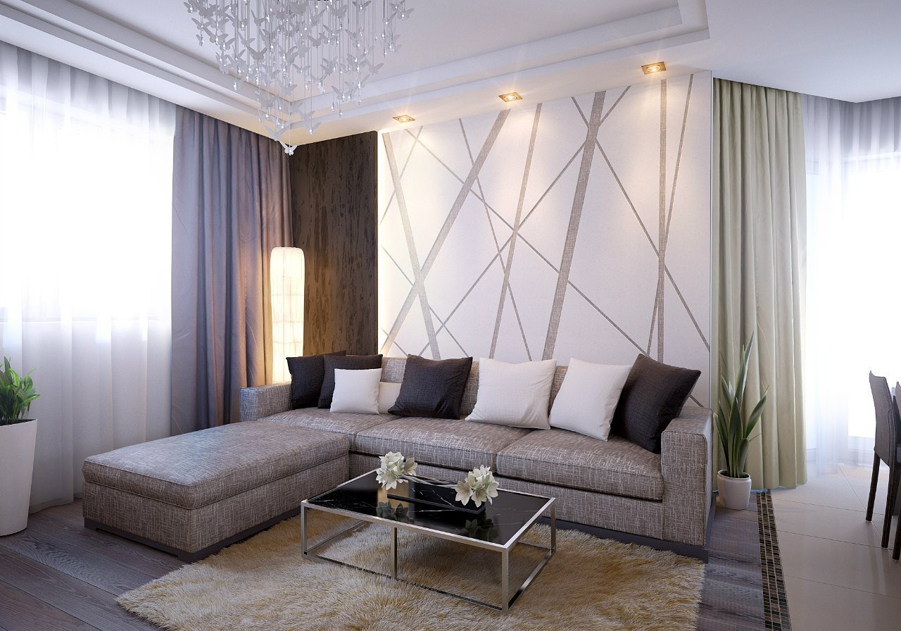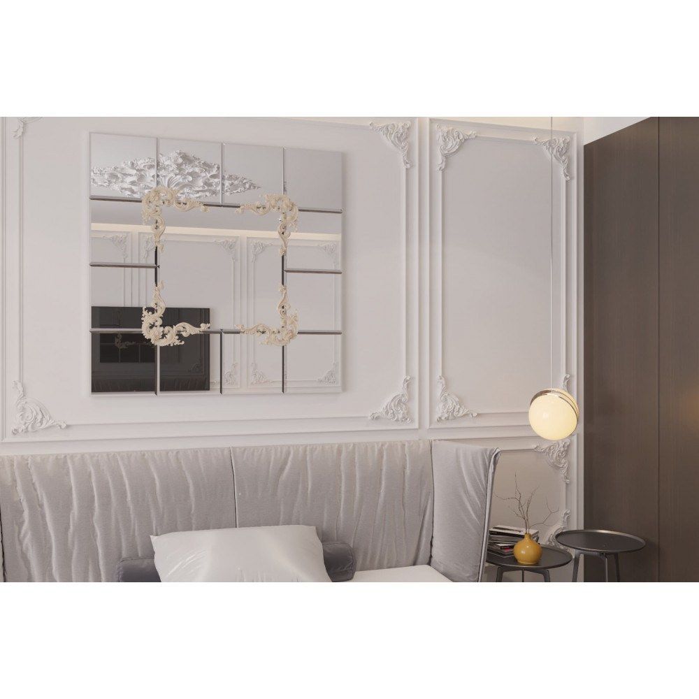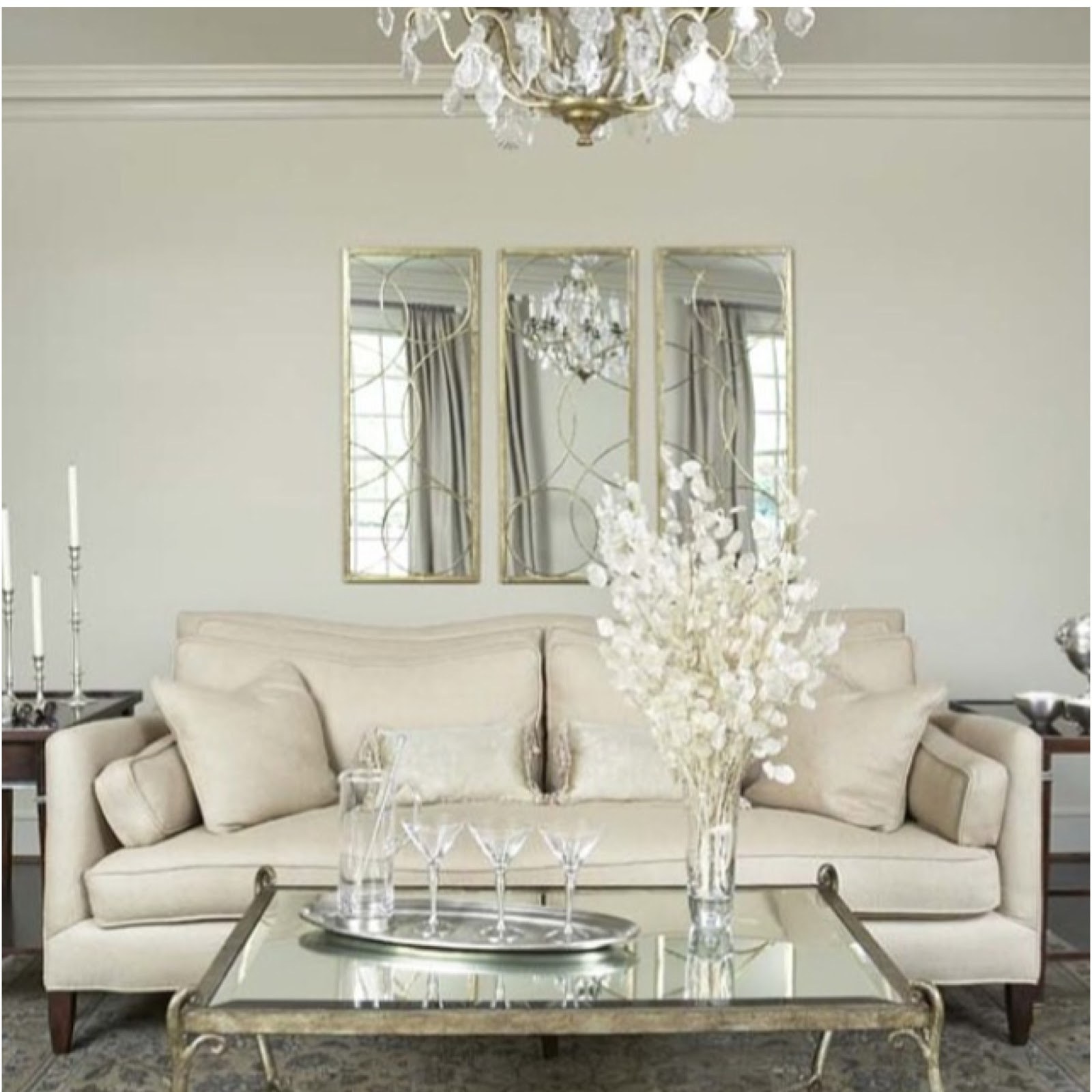 Зеркальное панно в гостиной за диваном в интерьере (77 фото)