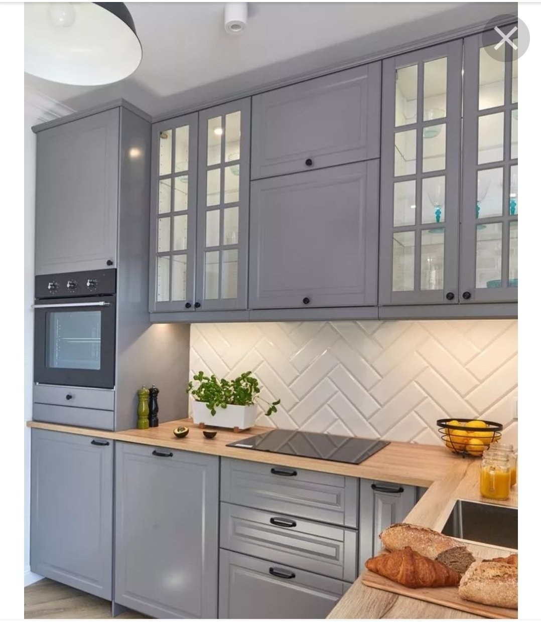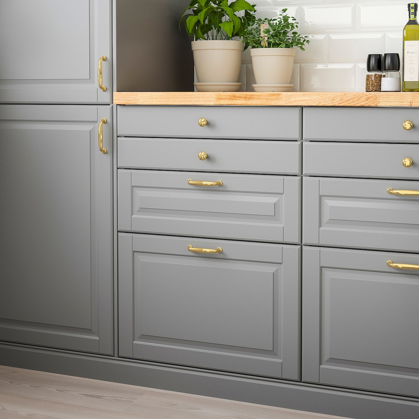 Икеа кухни Будбин серая с деревянной столешницей