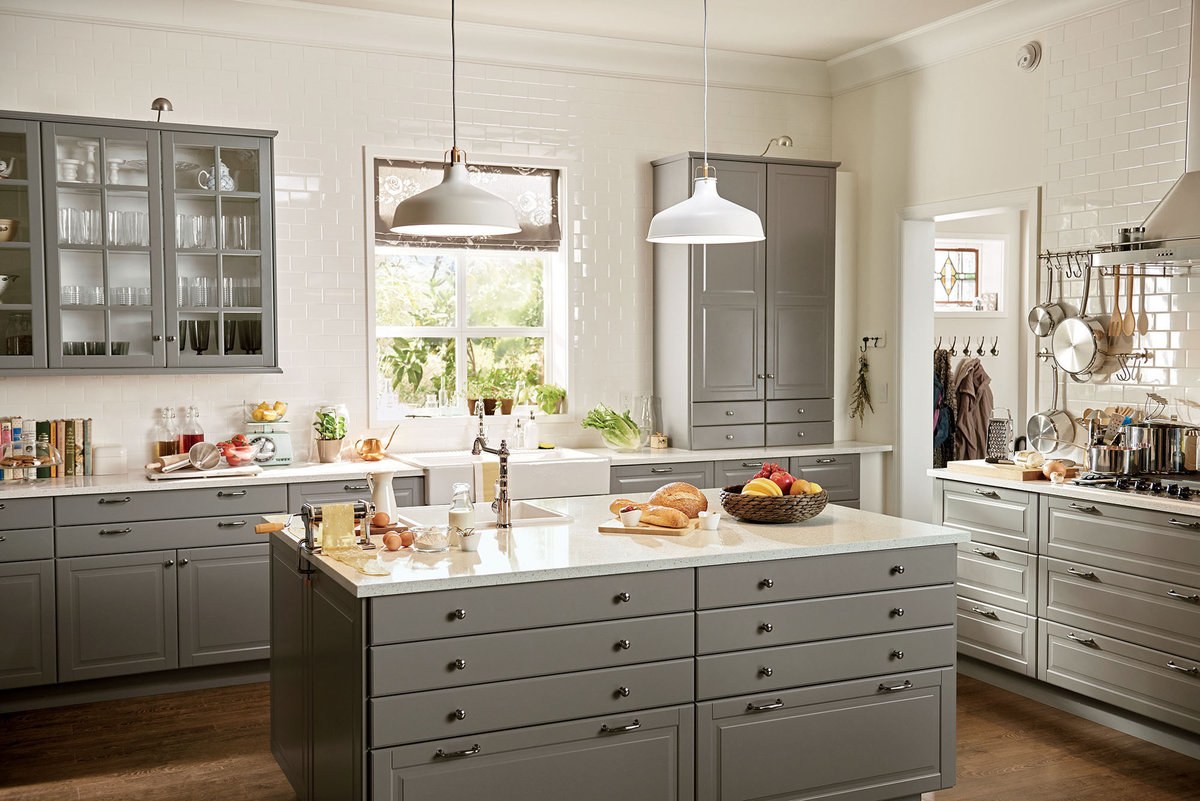 Кухня икеа серая с белым
