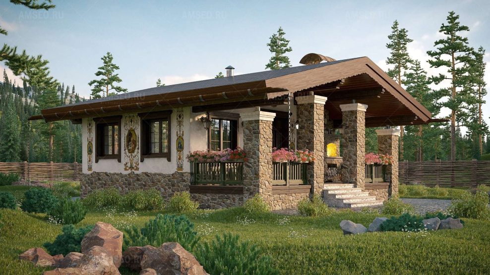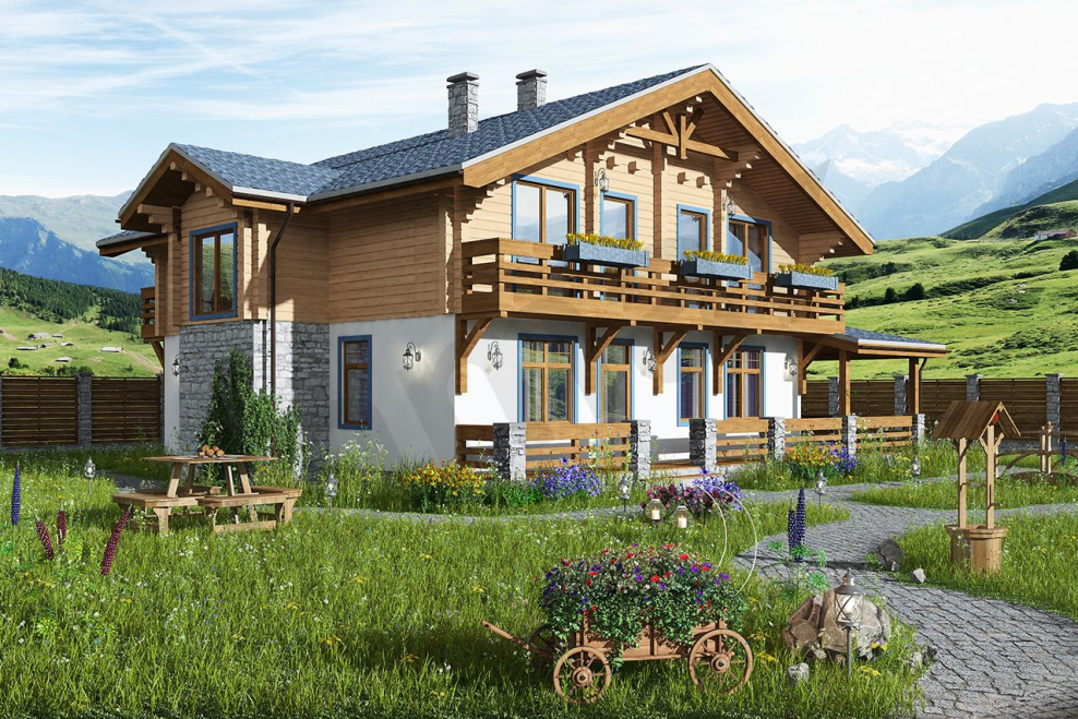 Стиль Шале из клееного бруса кедр, сосна 200 мм