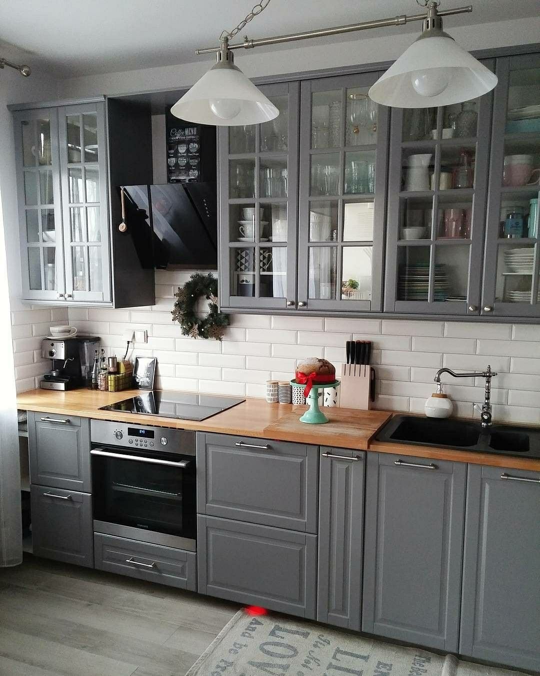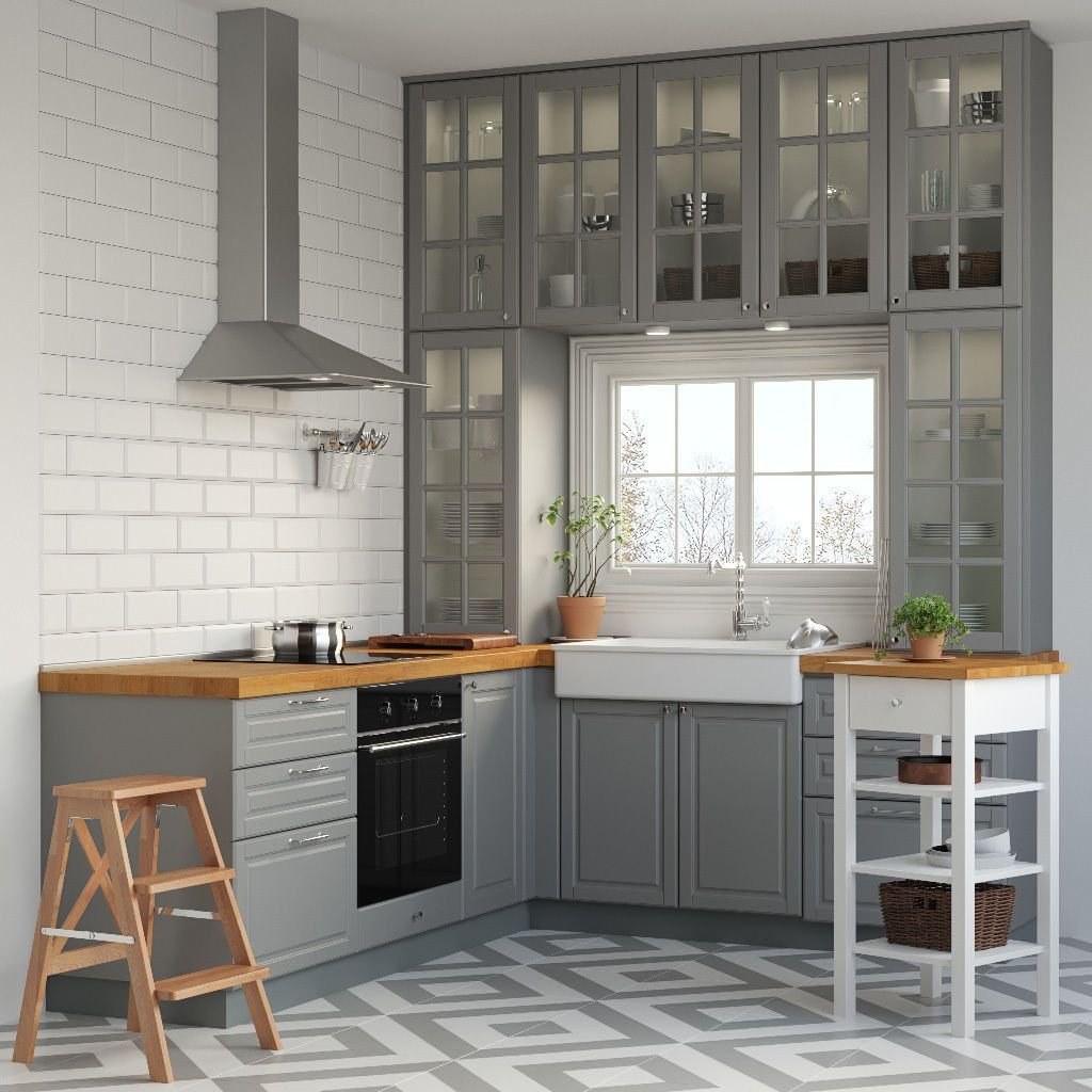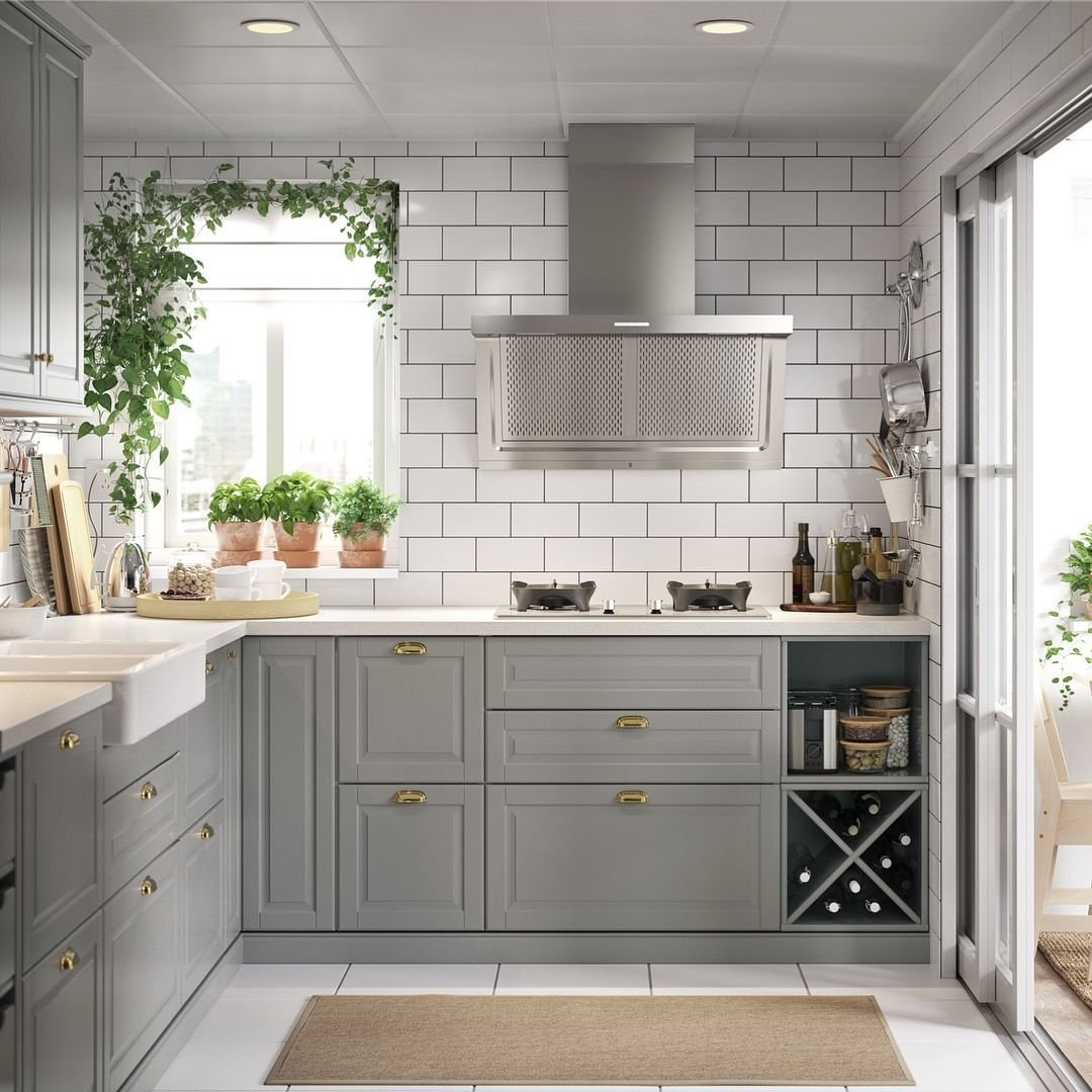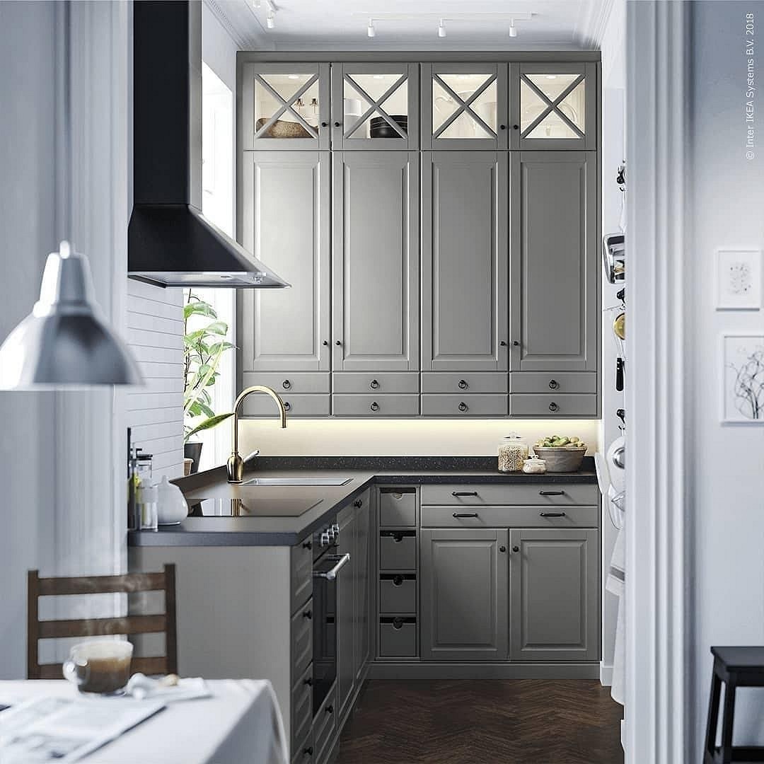 Кухня икеа Будбин серая в интерьере