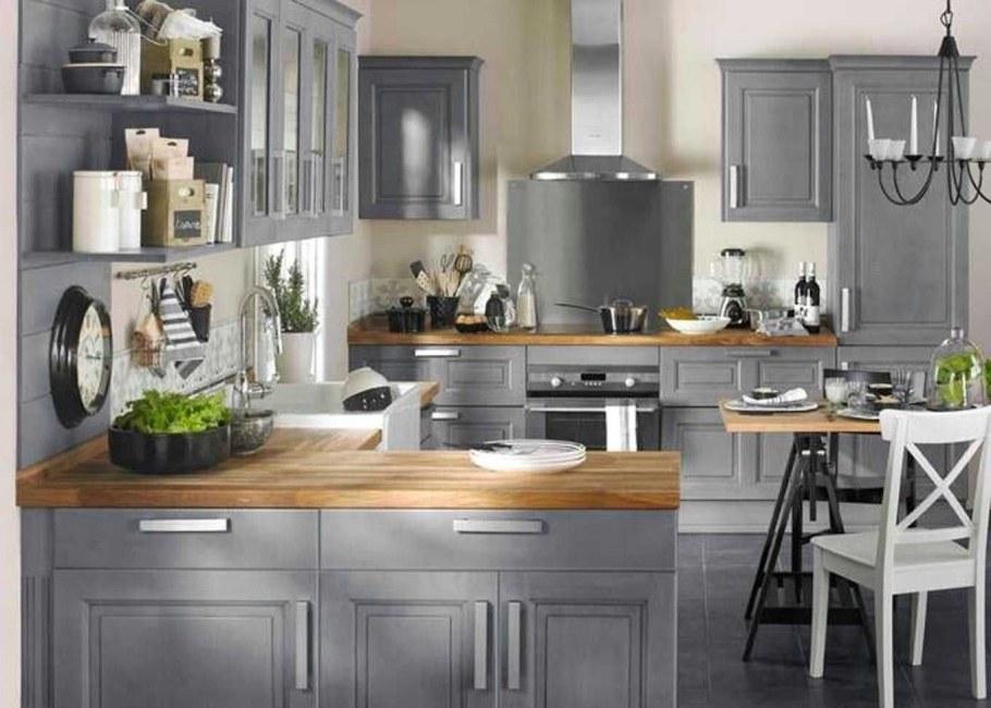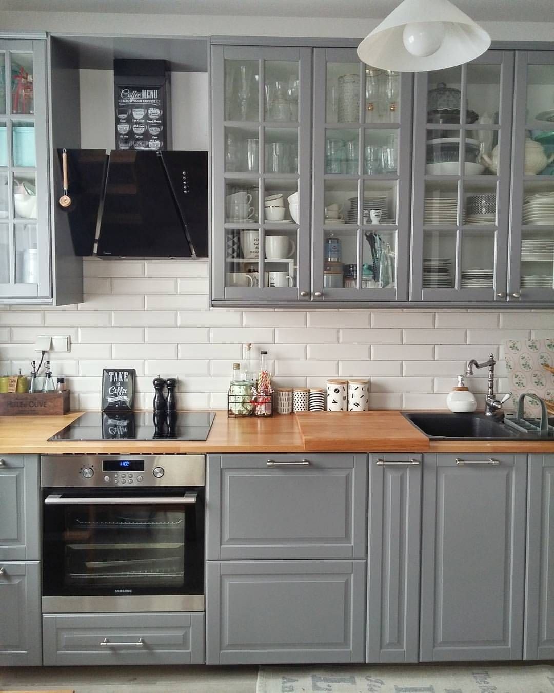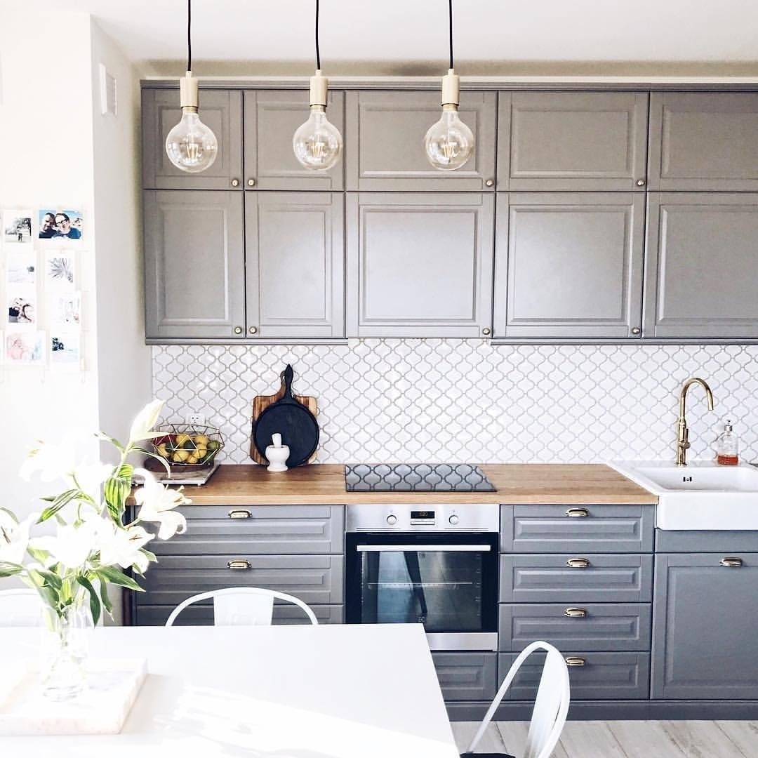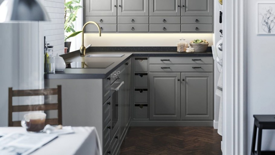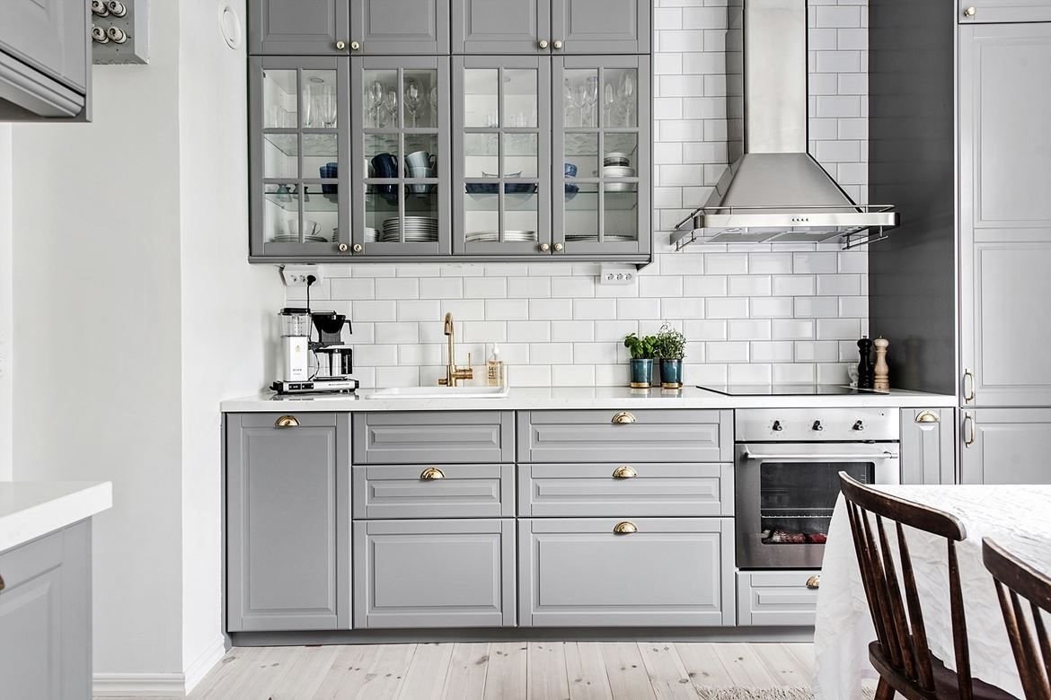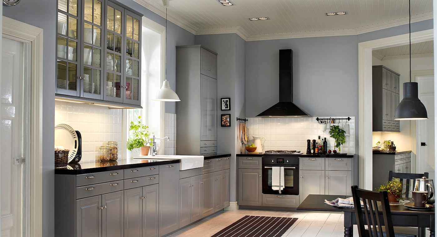 Кухня икеа Будбин серая в интерьере