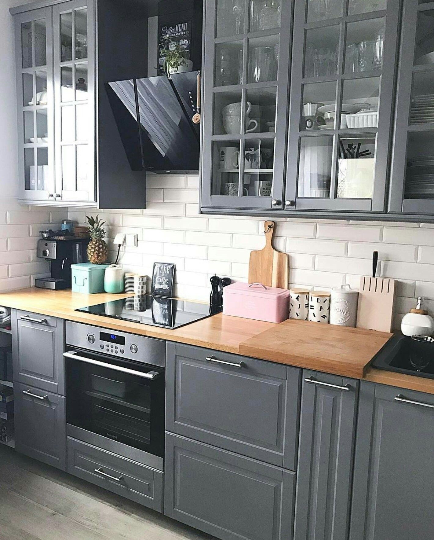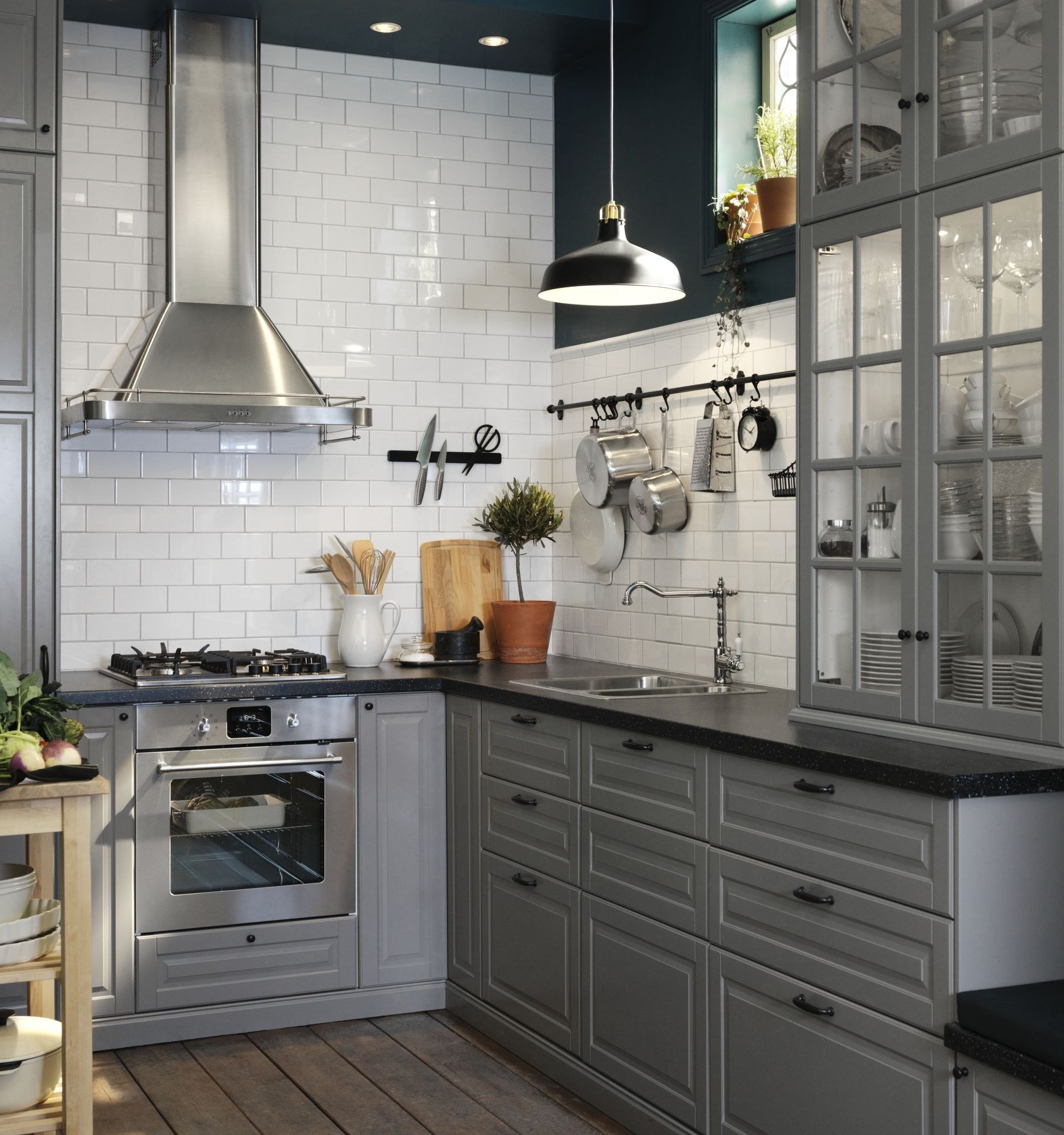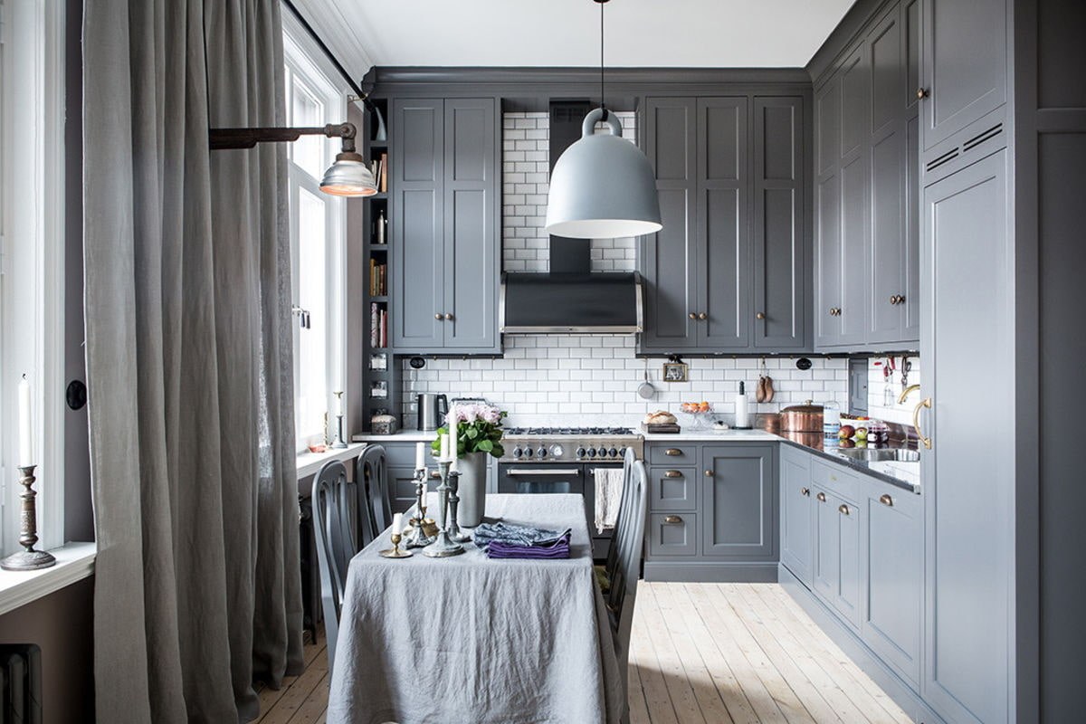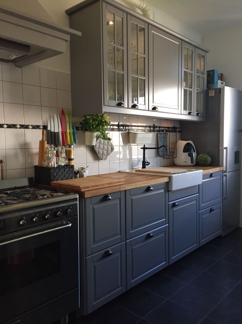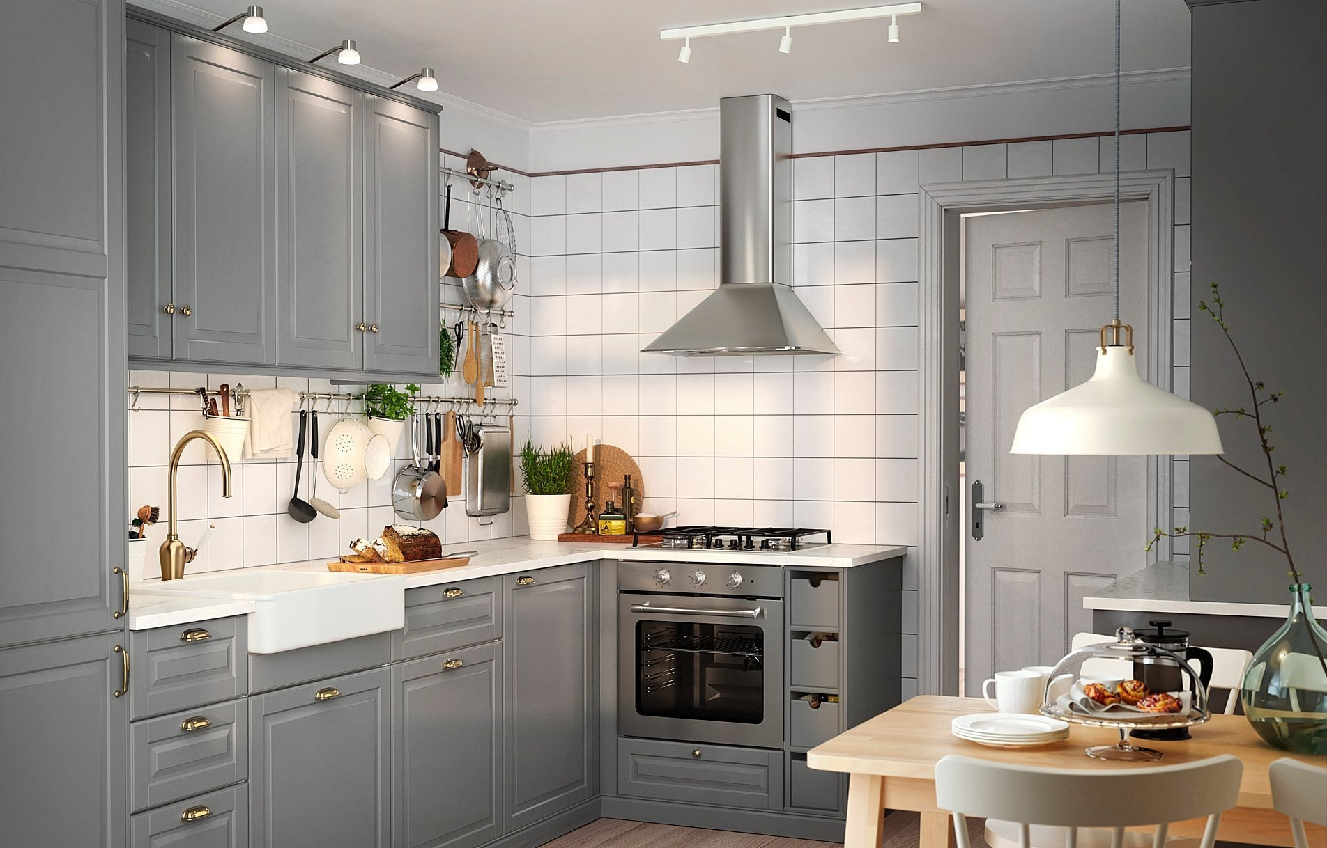 Кухня икеа Будбин серая в интерьере