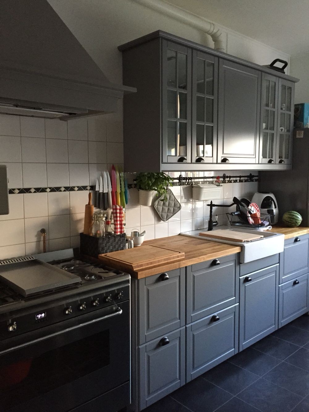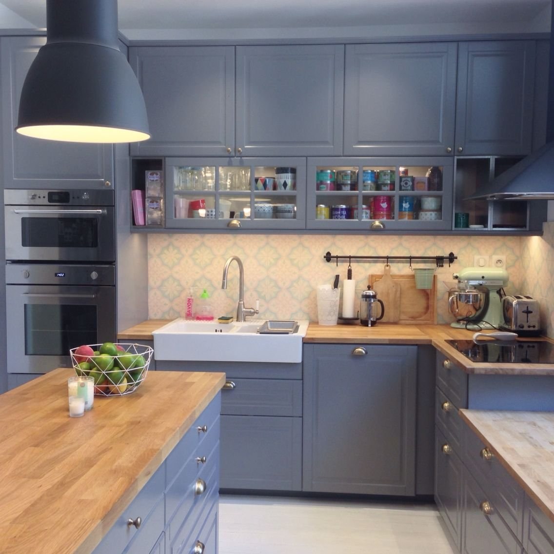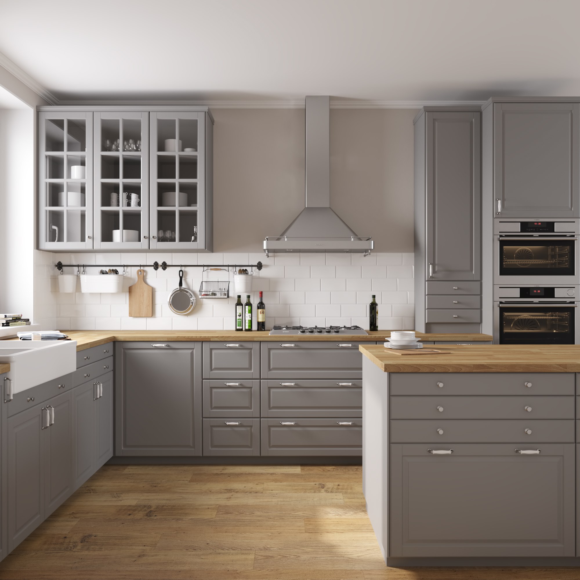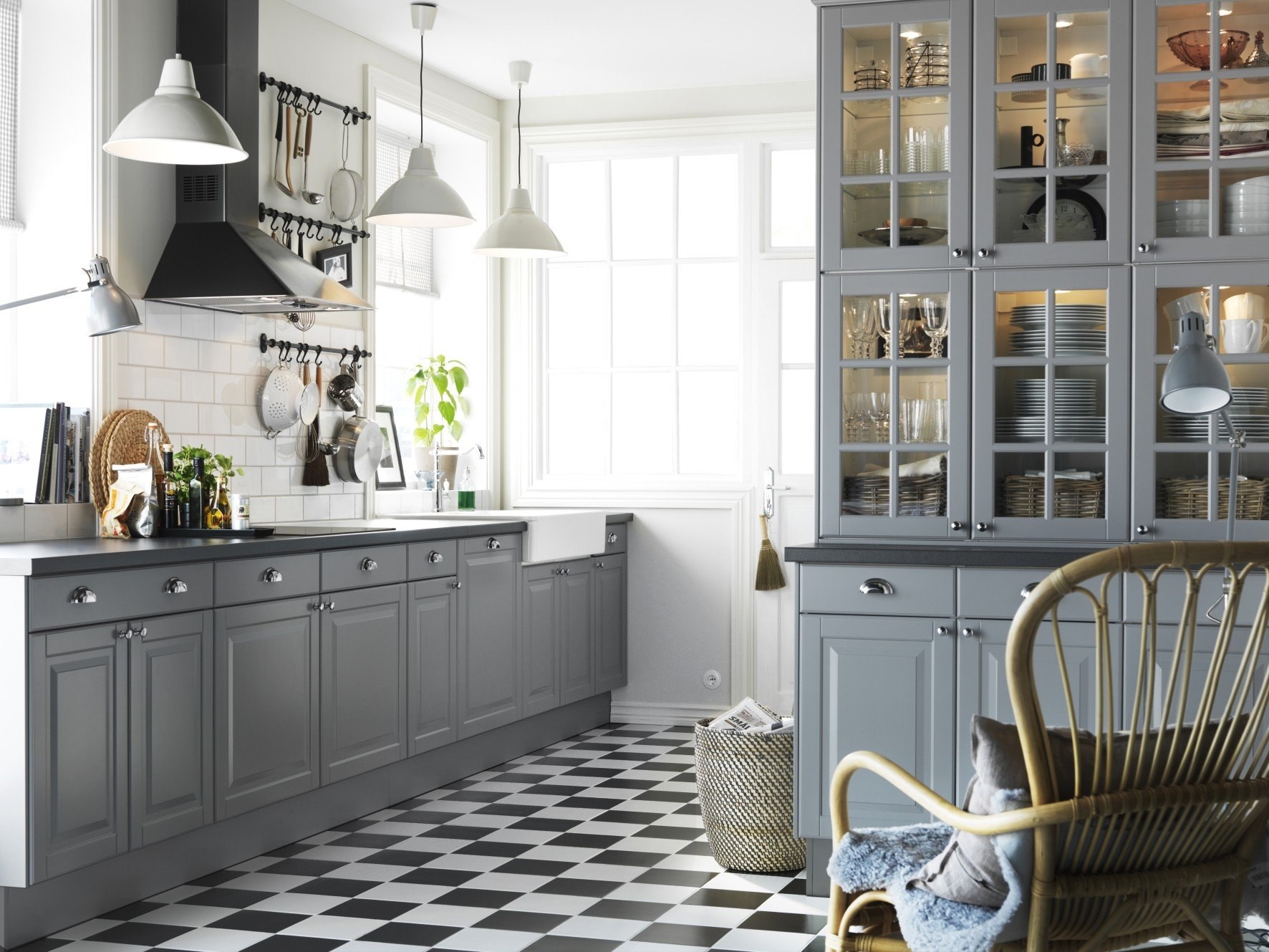 Кухня икеа Будбин серая в интерьере