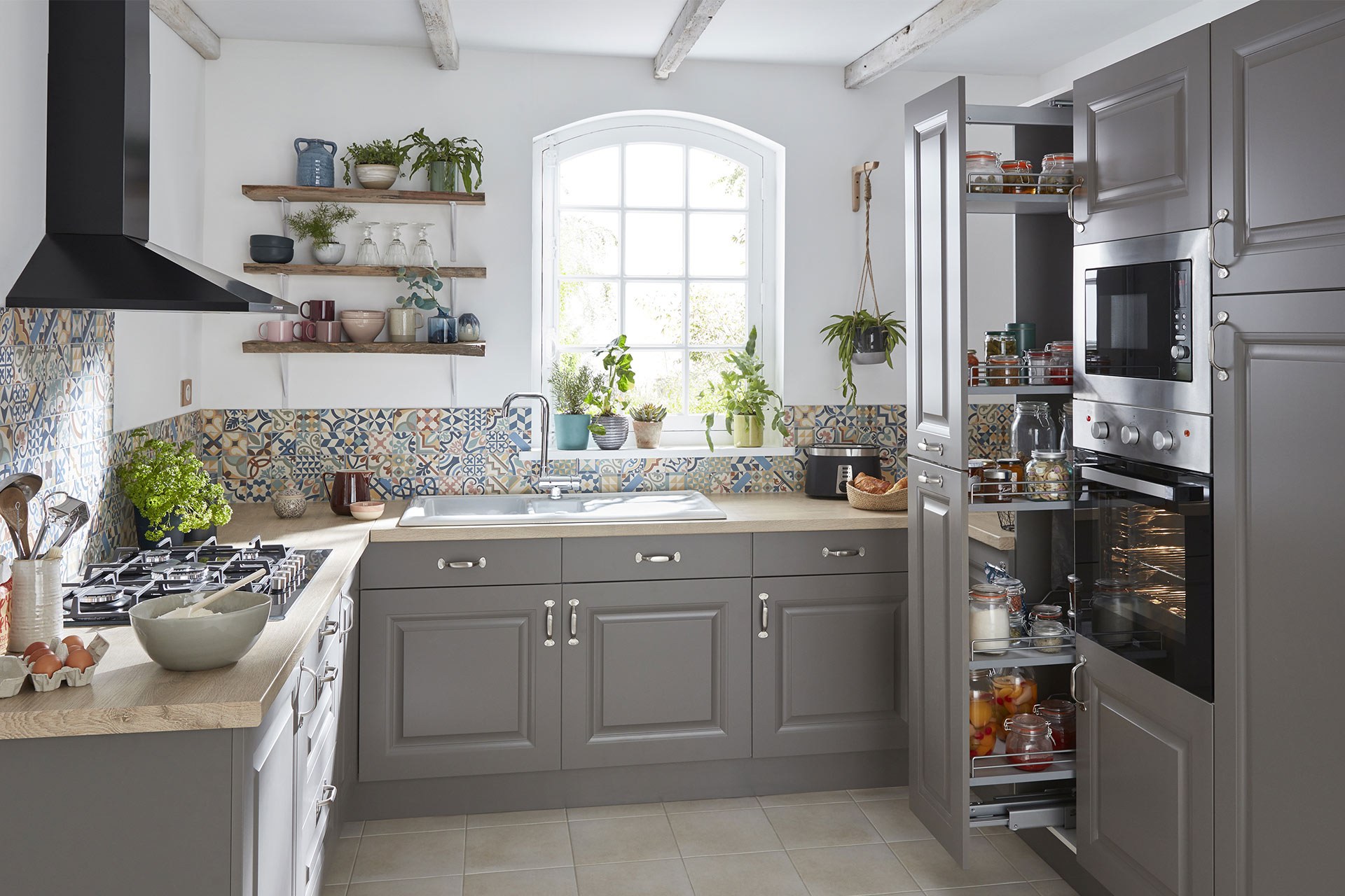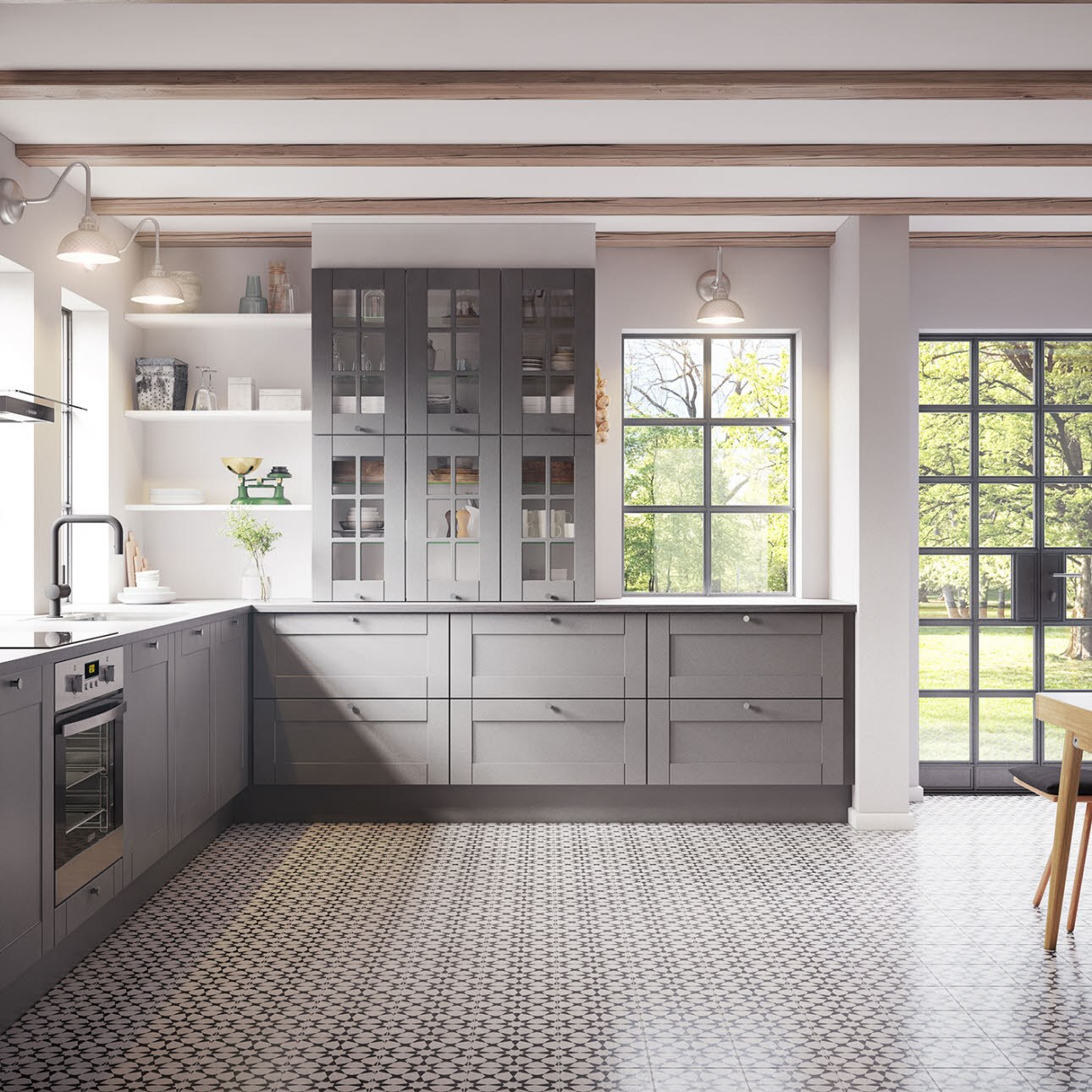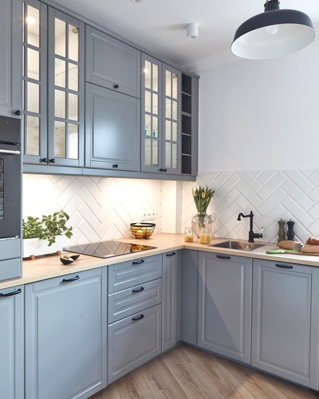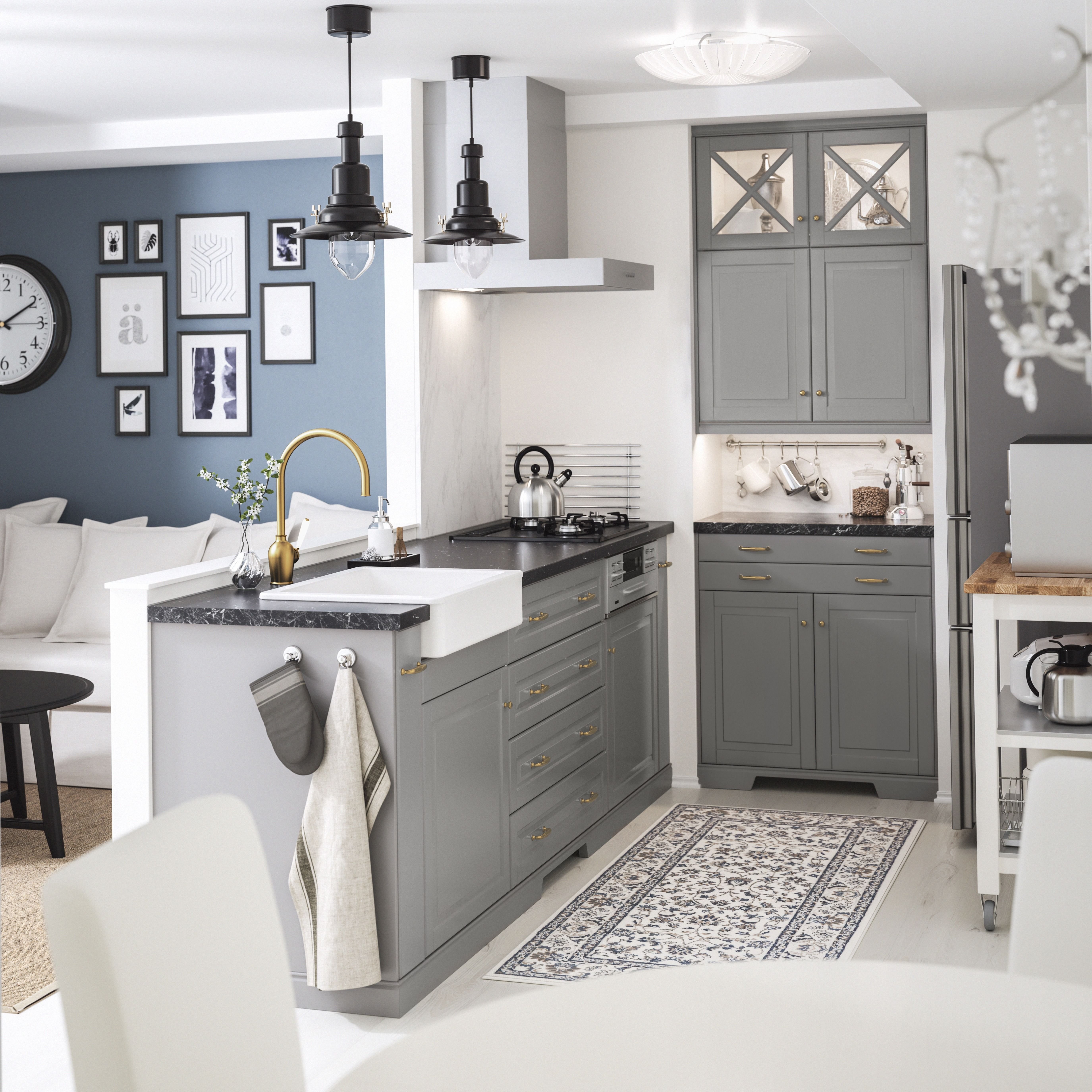 Кухня икеа Будбин серая в интерьере