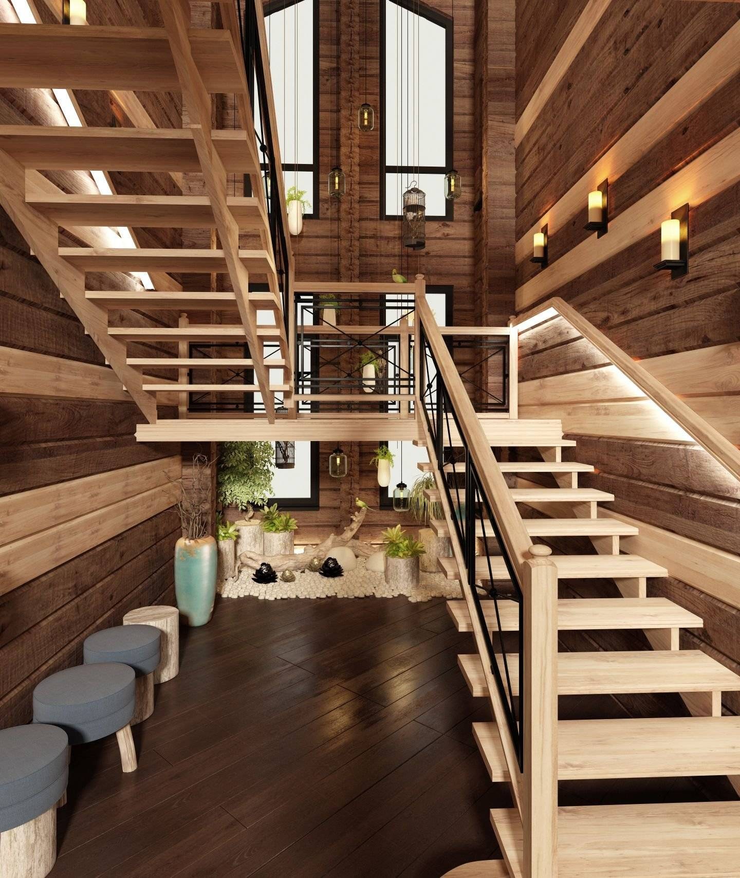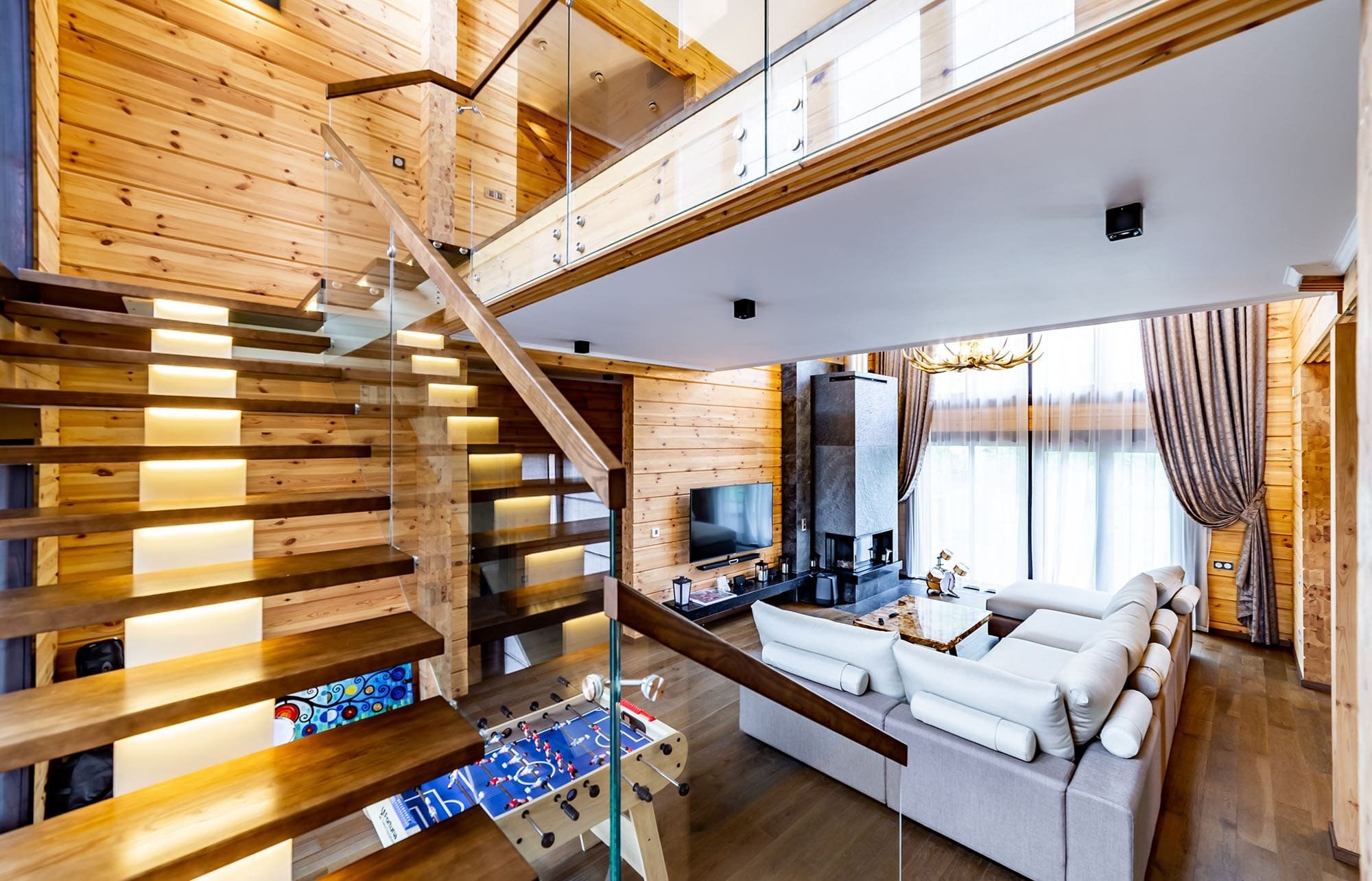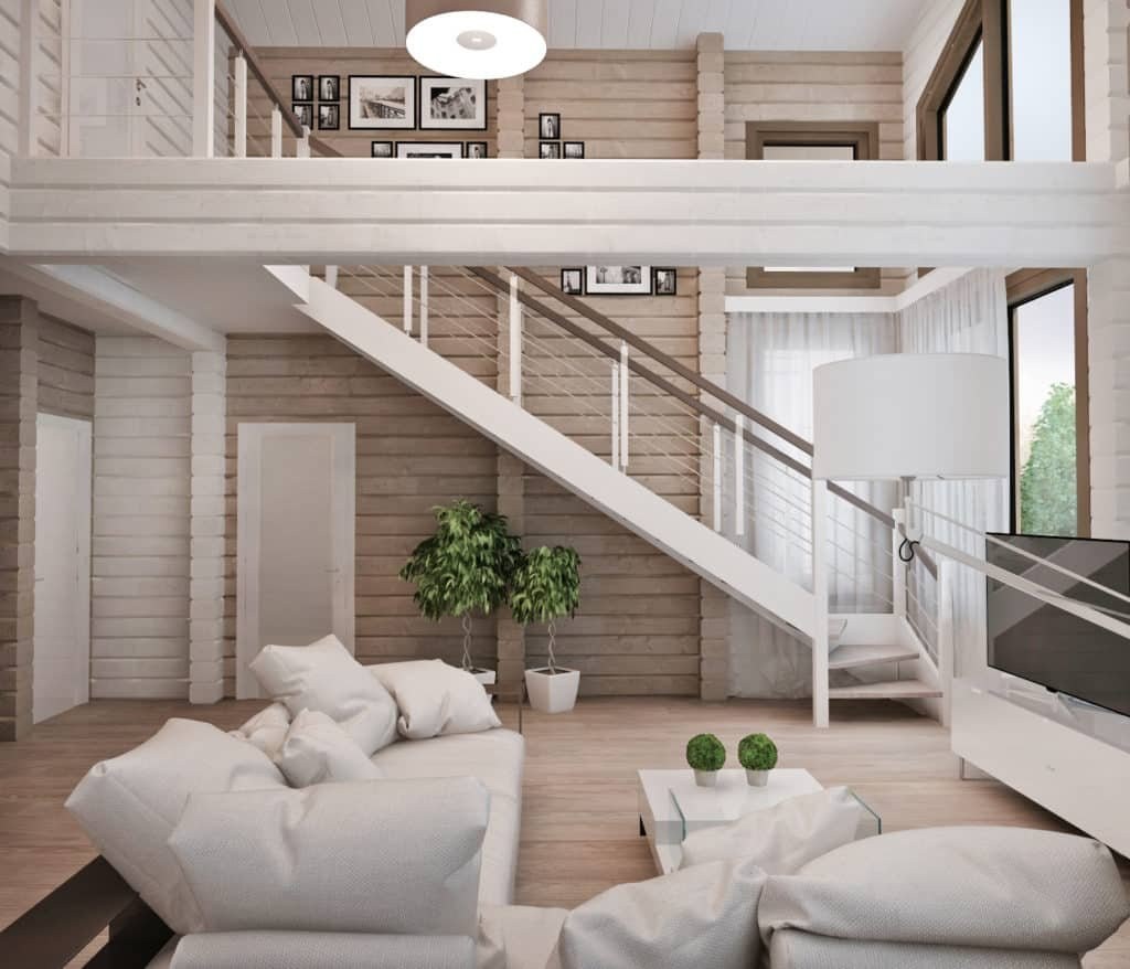 Интерьеры в домах из клееного бруса в скандинавском стиле