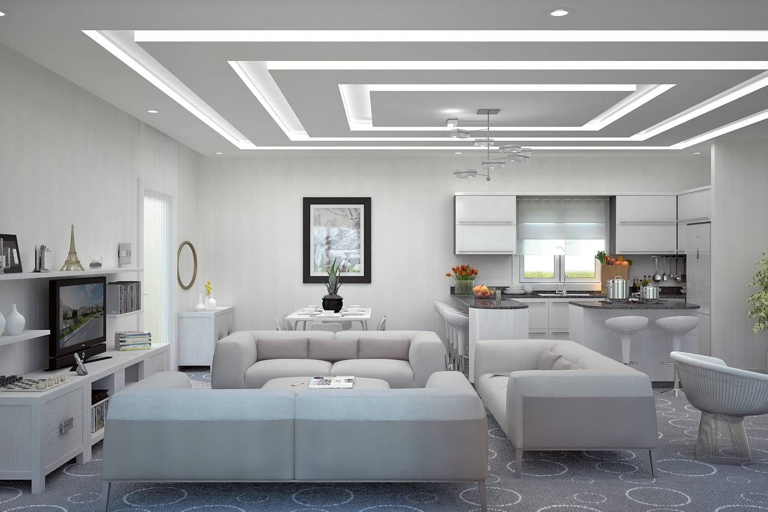 Потолок из гипсокартона для гостиной