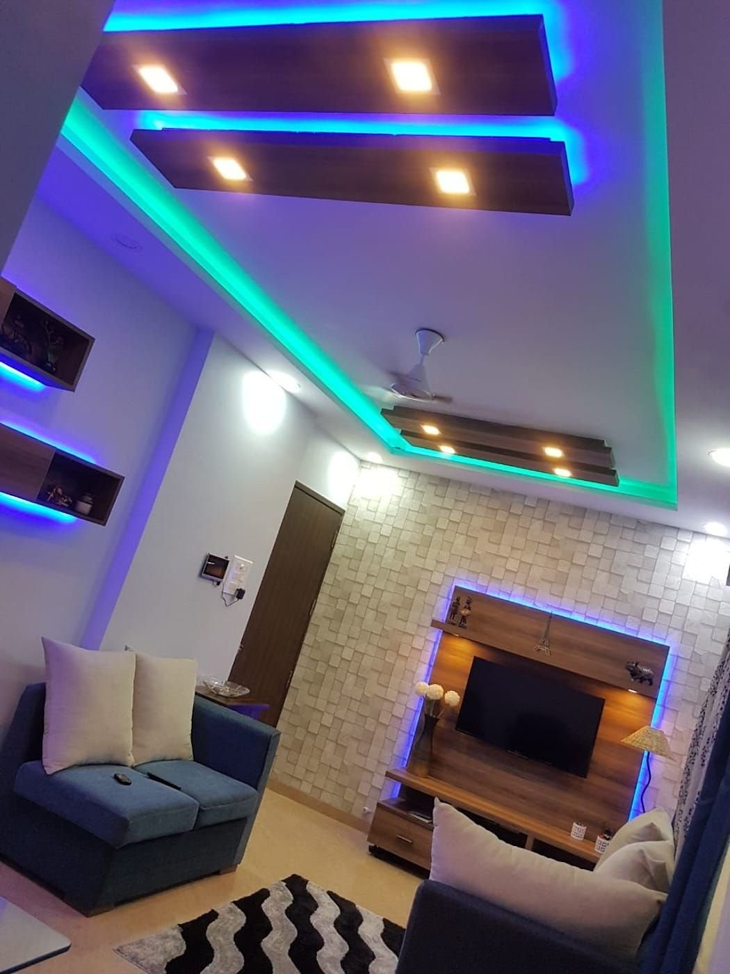 Потолки из гипсокартона с подсветкой для гостиной