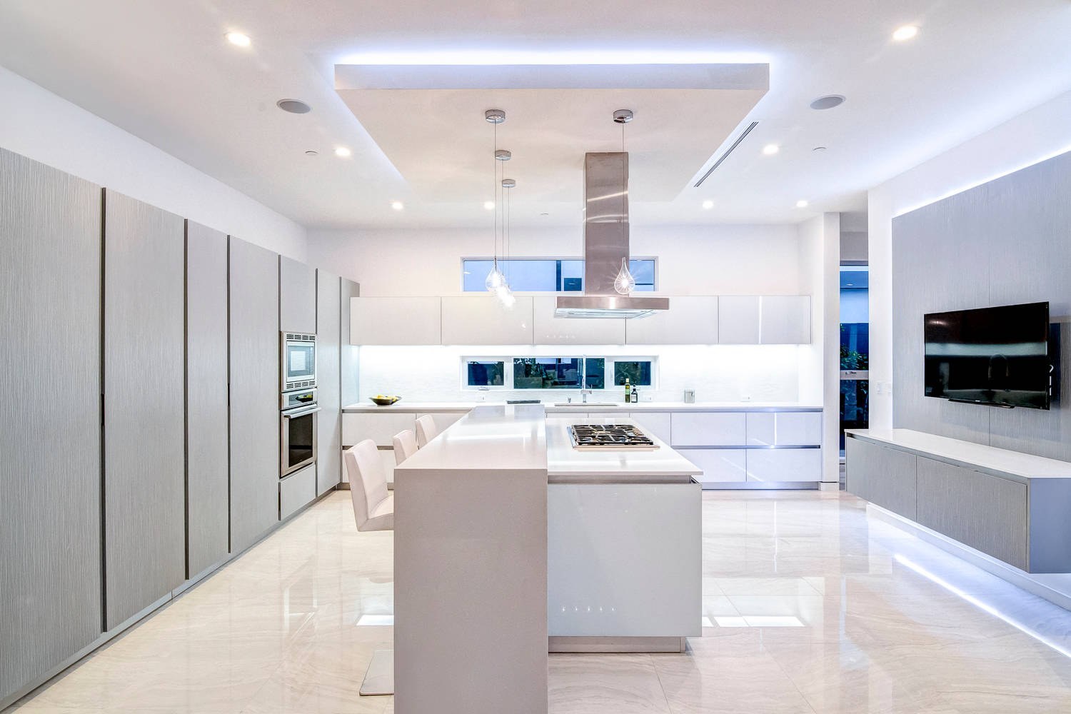Потолки для зала в стиле хайтек