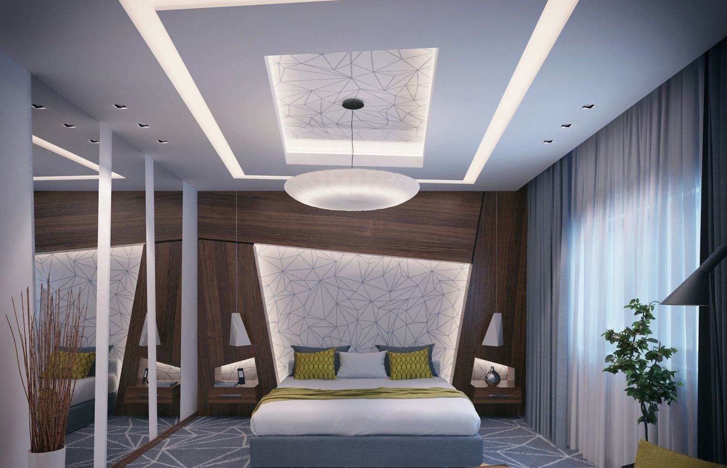Потолок спальне гипсокартон хайтек