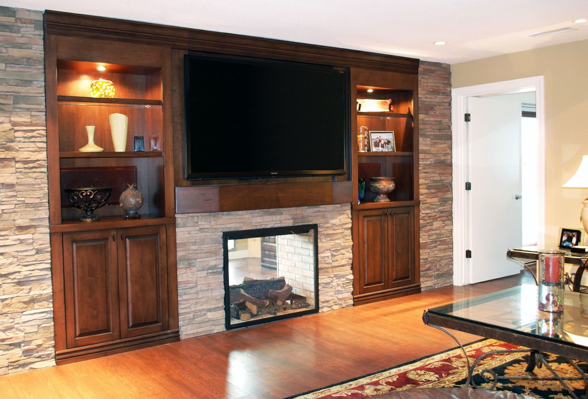 Шкаф в гостиную со встроенным камином
