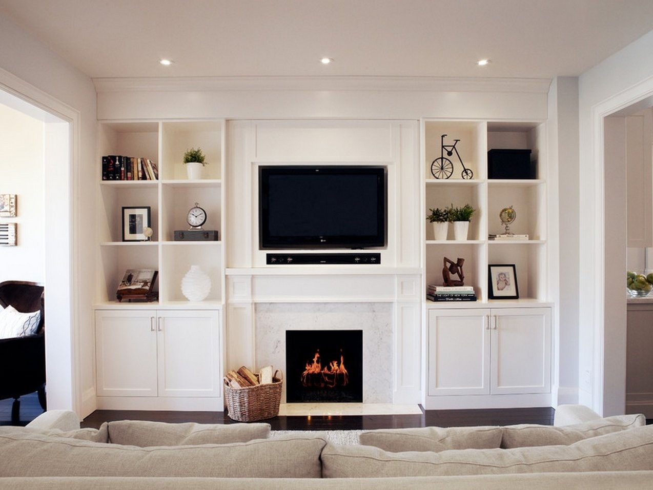 Встроенный камин в гостиной