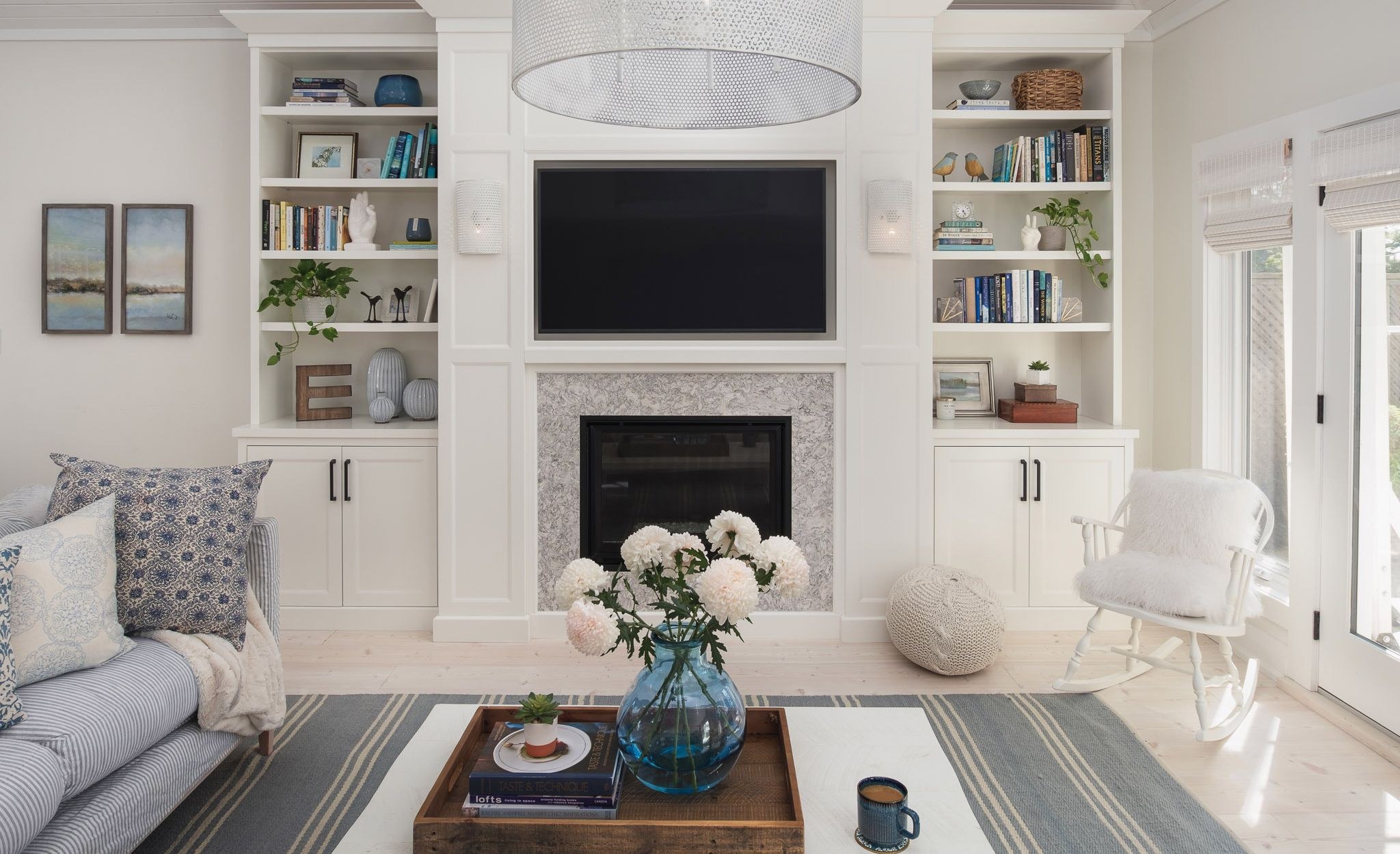 Белая гостиная с камином