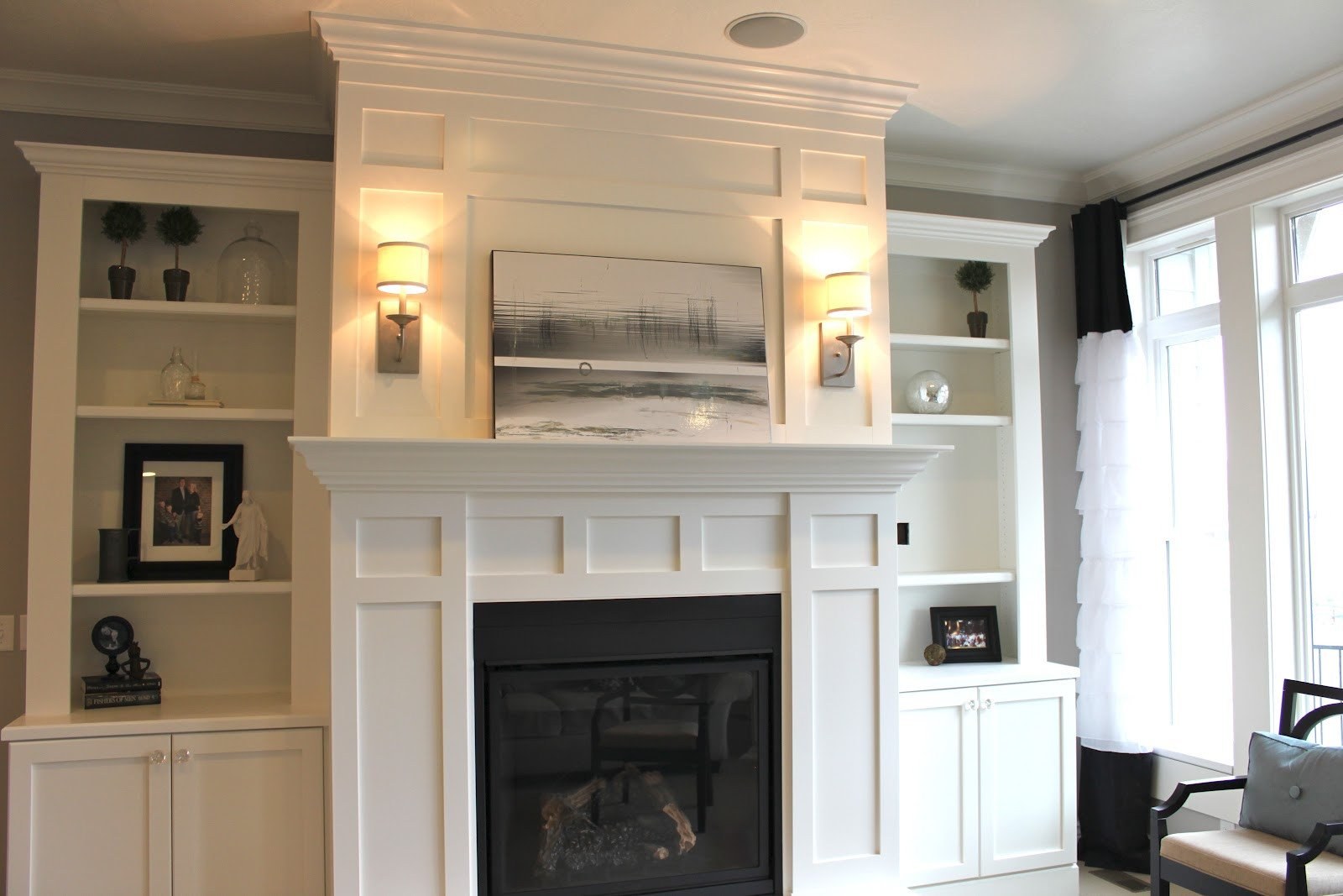 Камин со шкафами по бокам