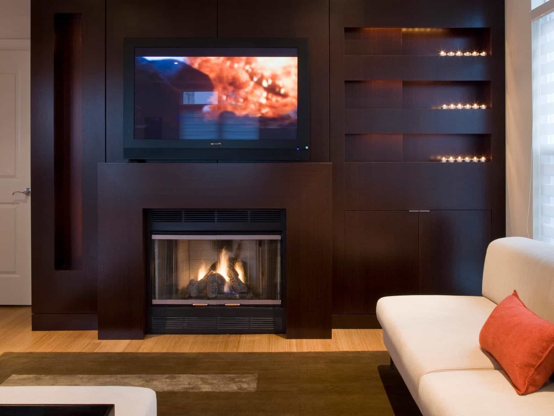 Телевизор над камином