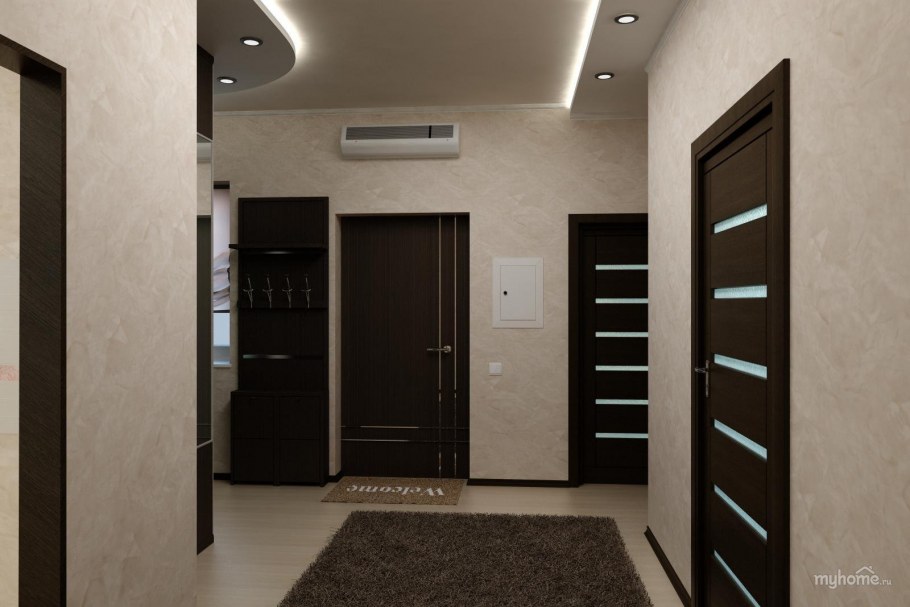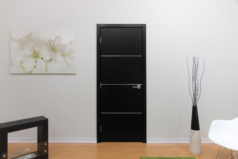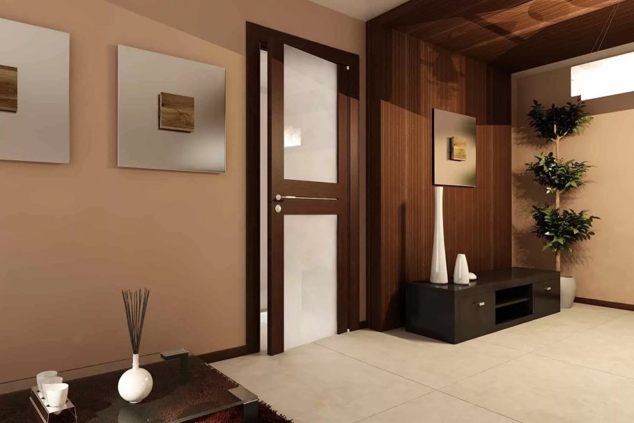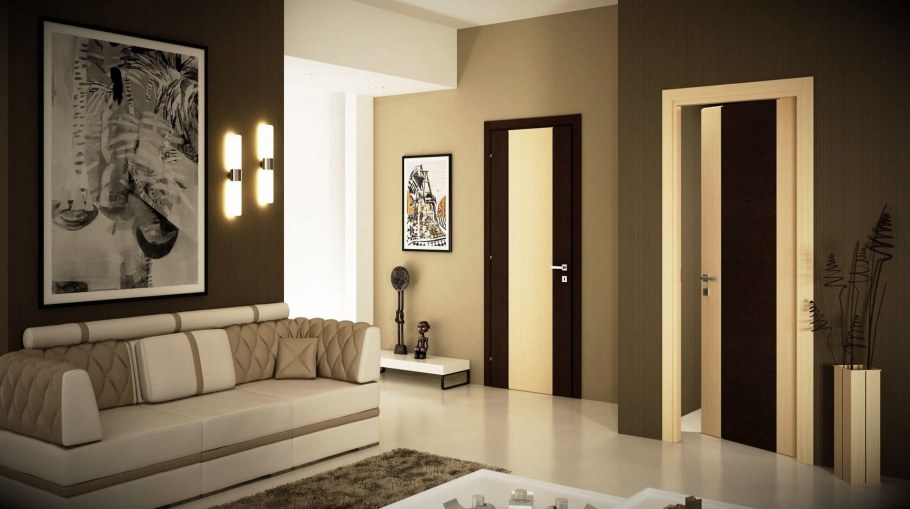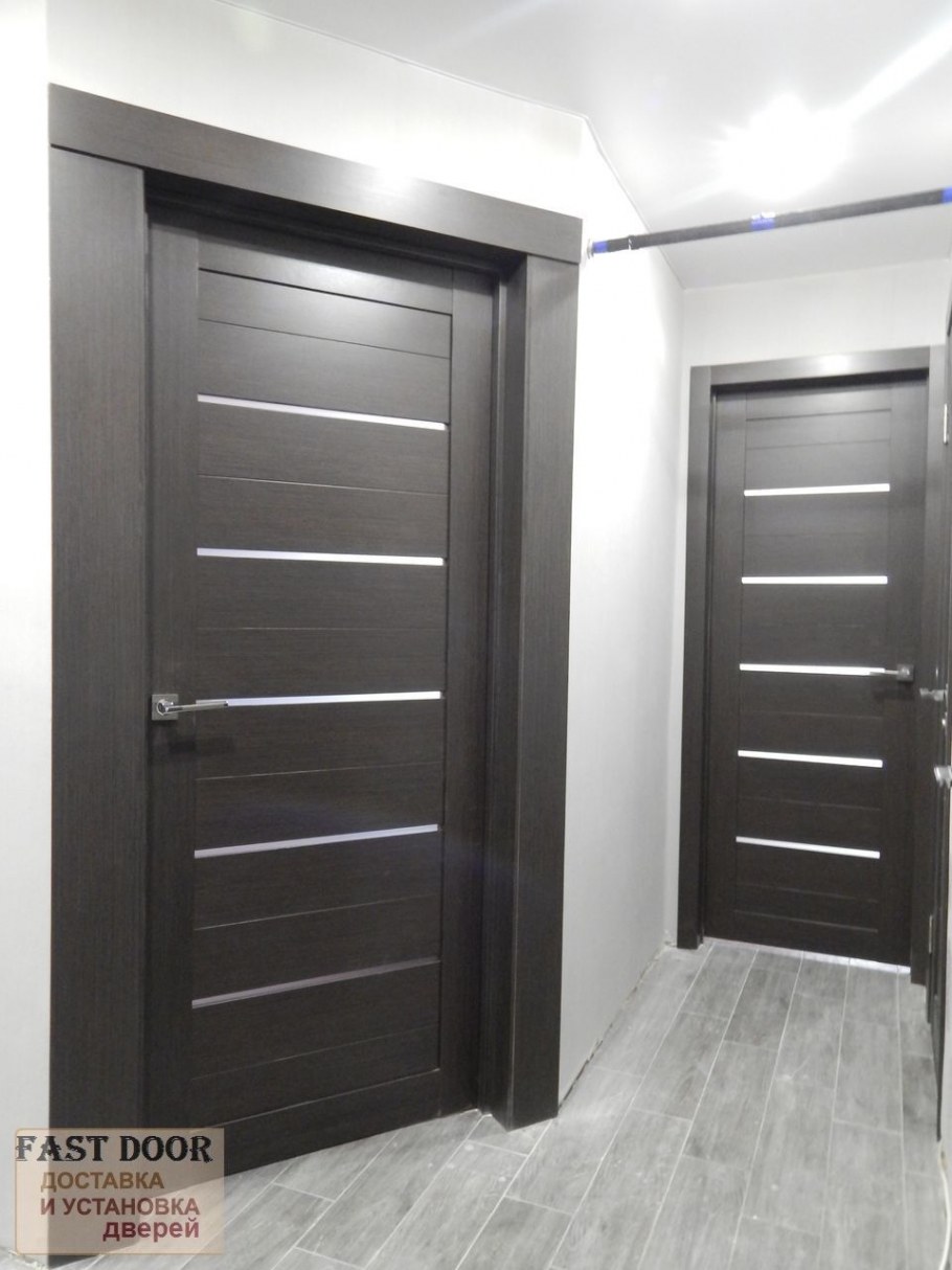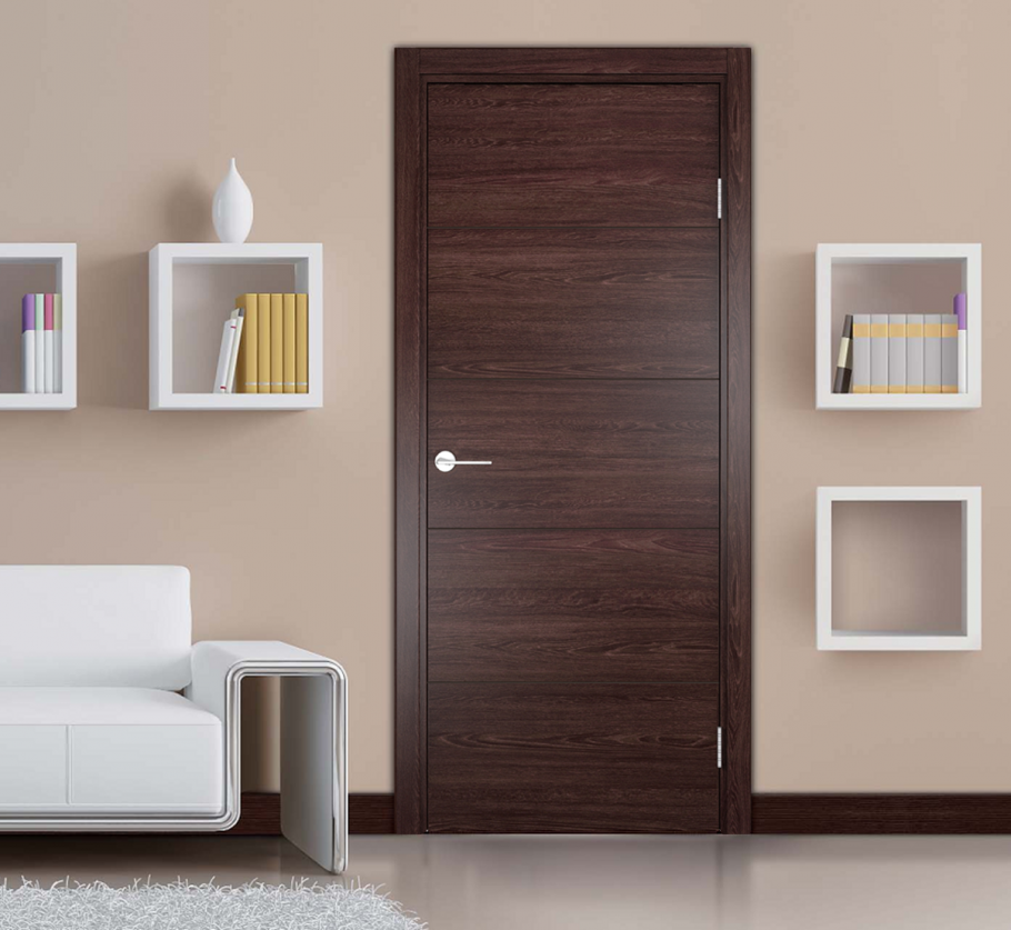 Дверь венге межкомнатная в интерьере с ламинатом Кастелло 4282