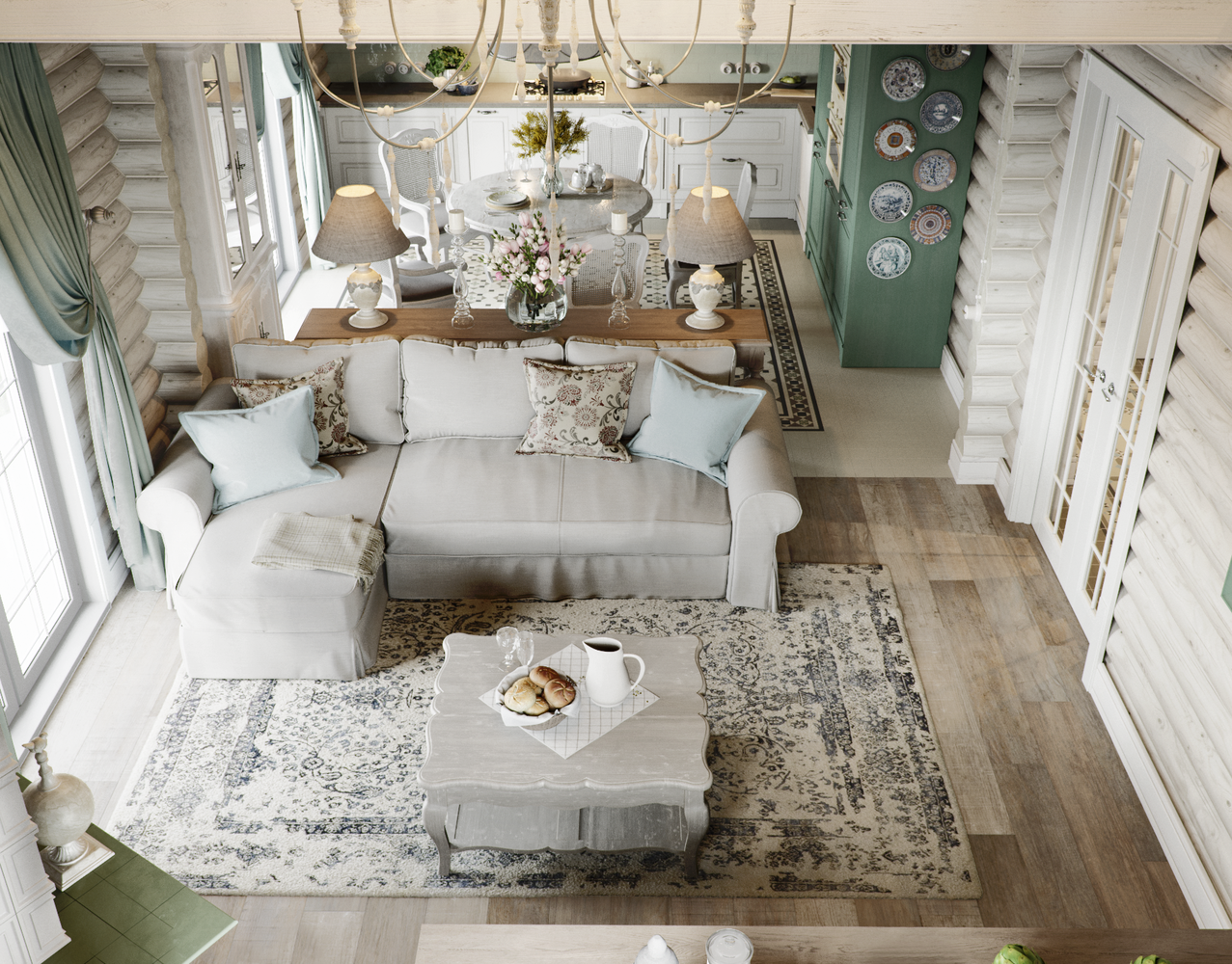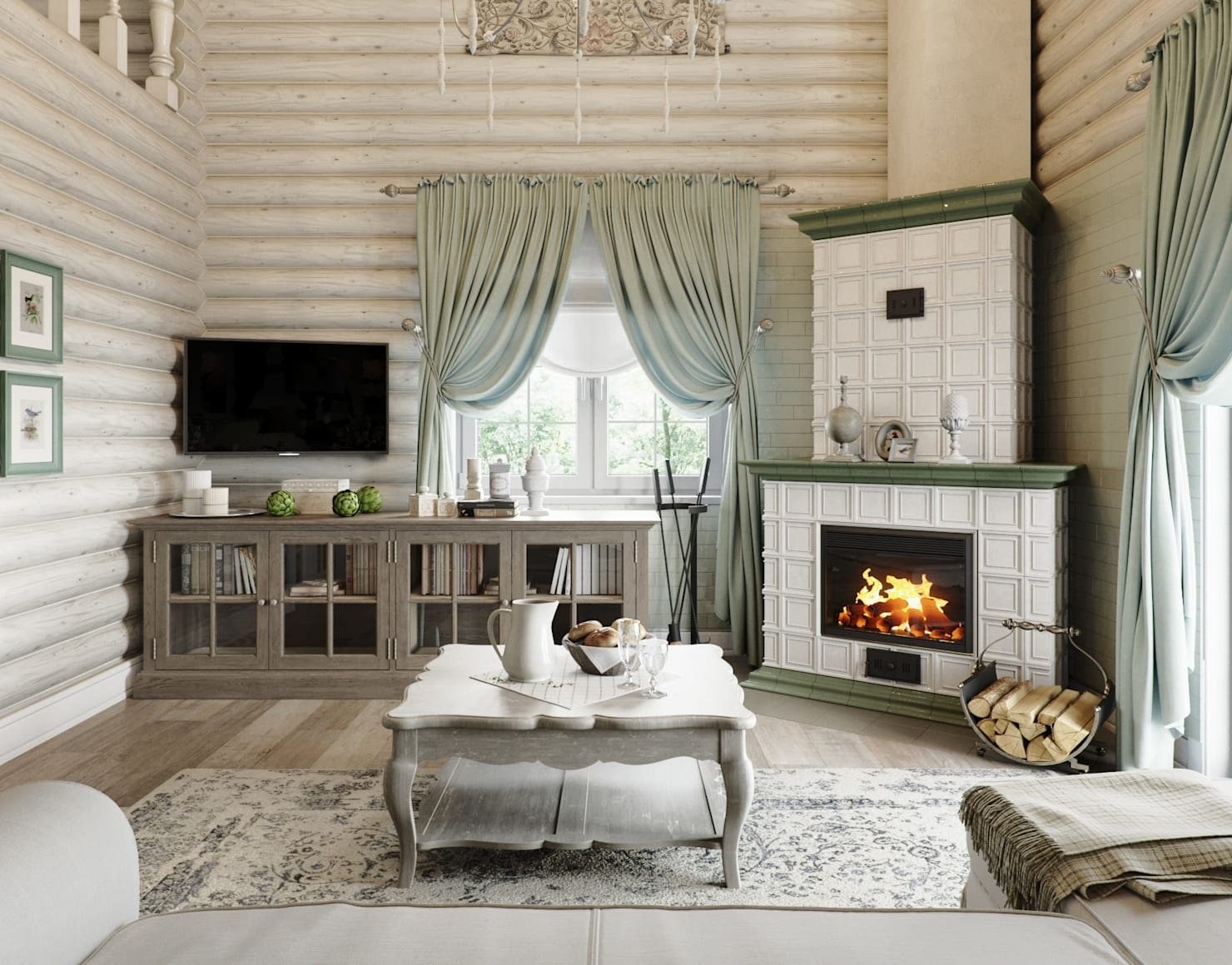 Гостиная Прованс Кантри в бревенчатом