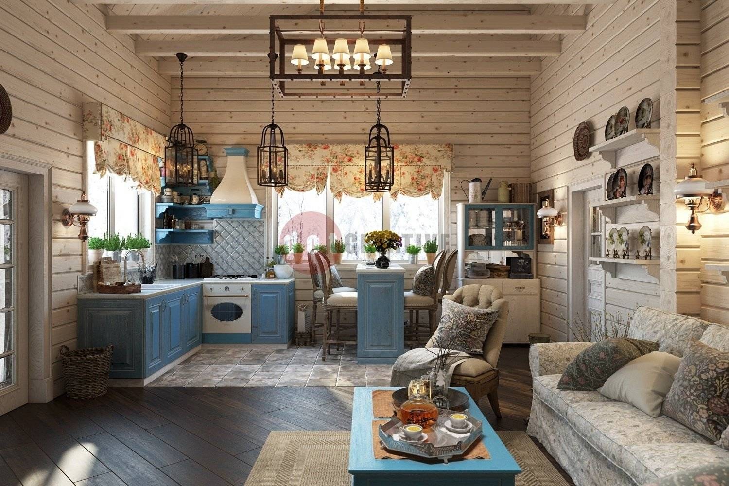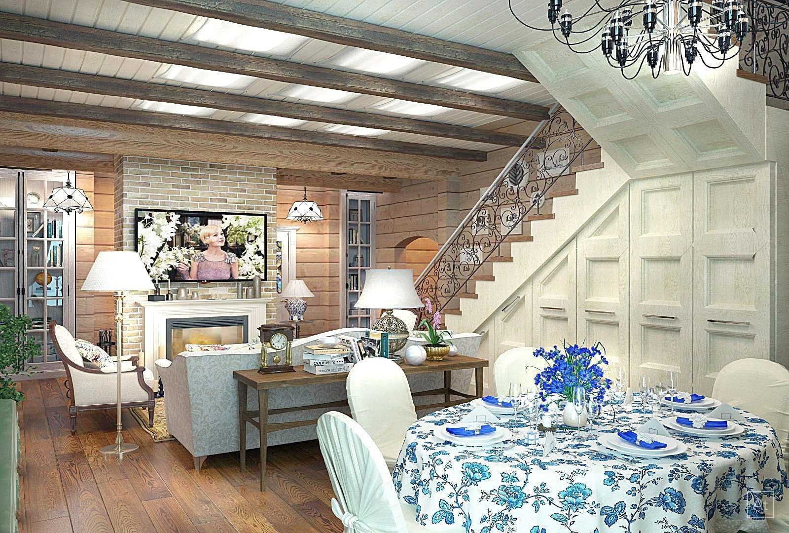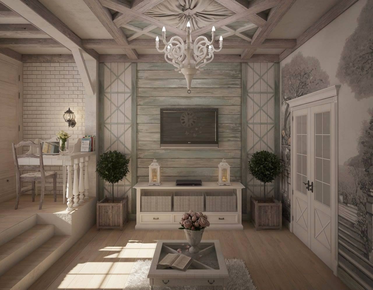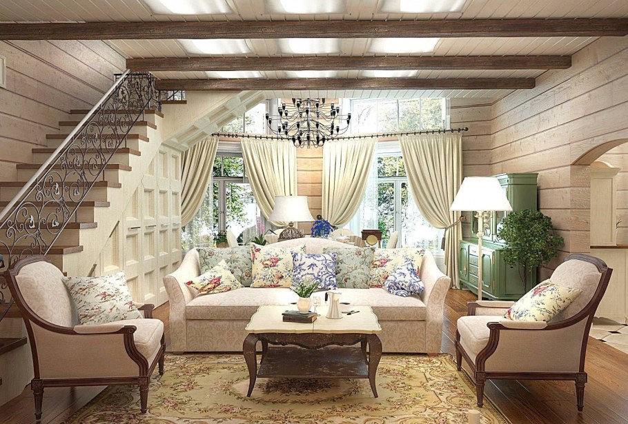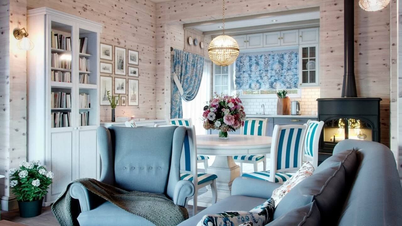 Гостиная в деревянном доме в стиле прованс (83 фото)