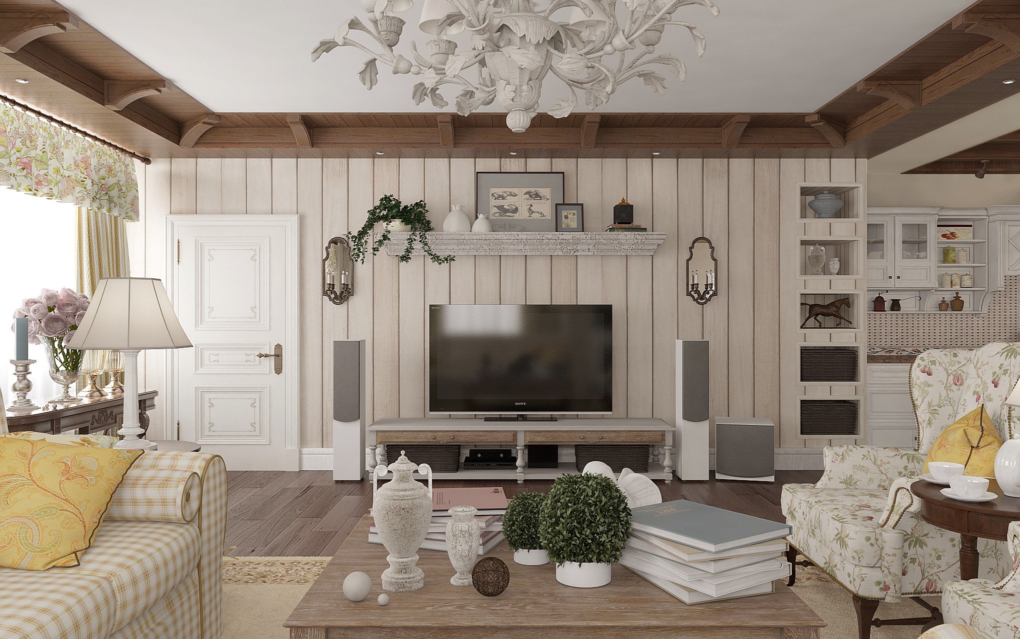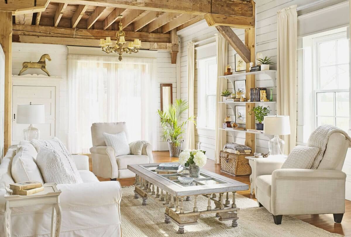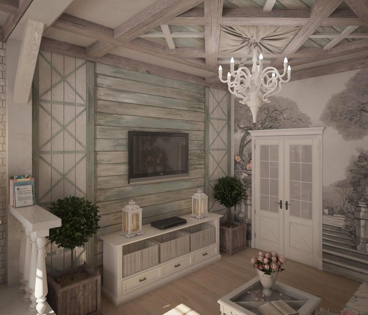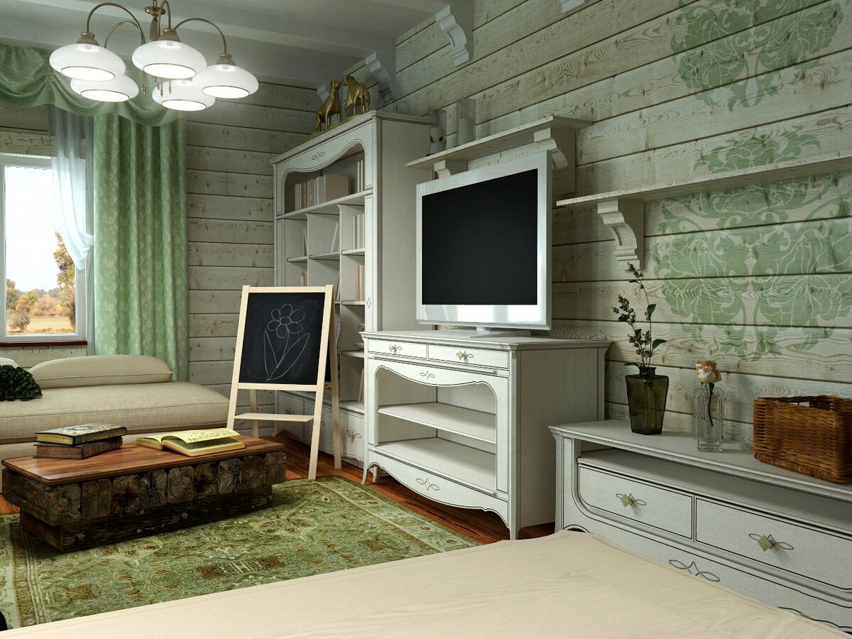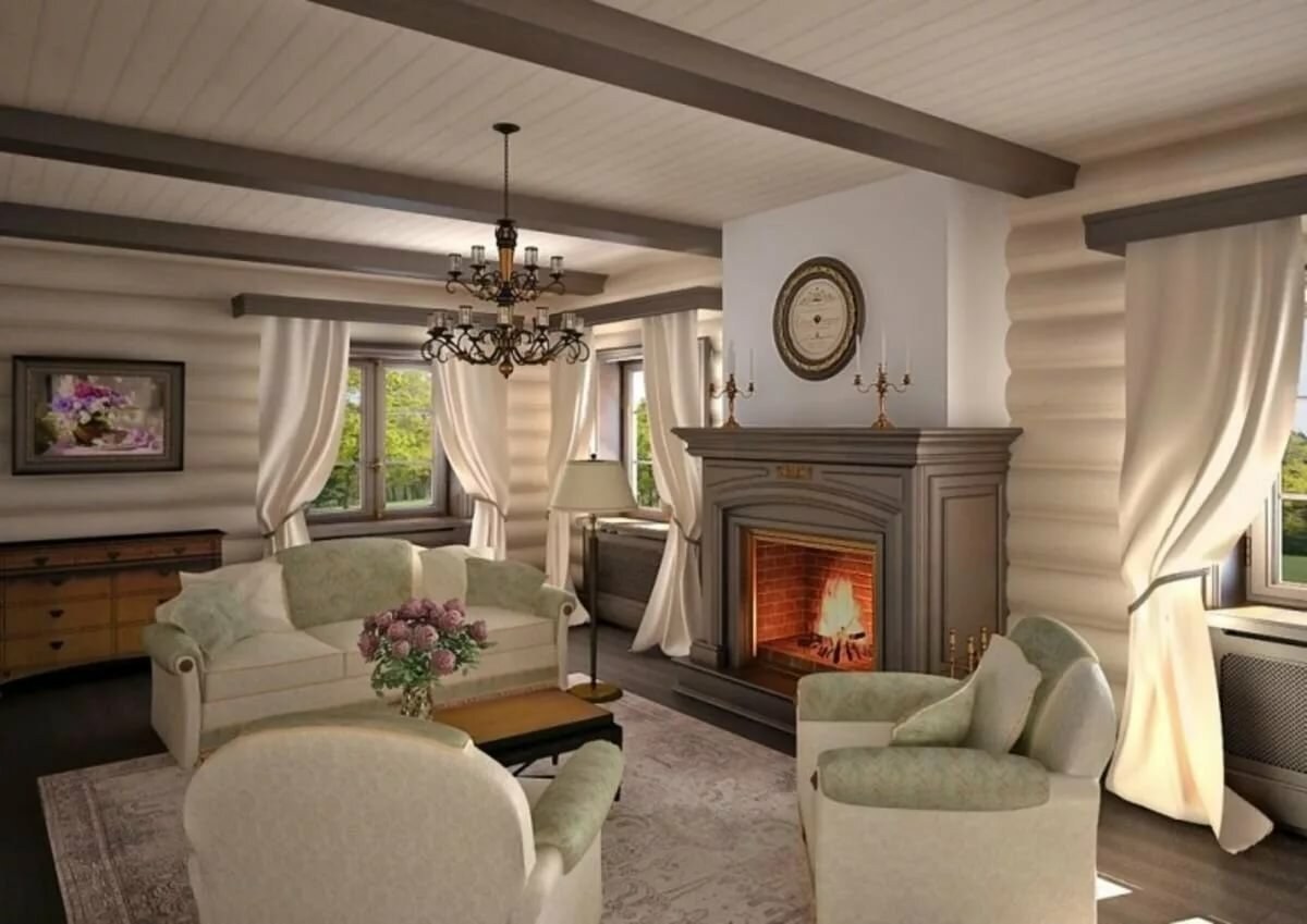 Гостиная в деревянном доме в стиле прованс (83 фото)