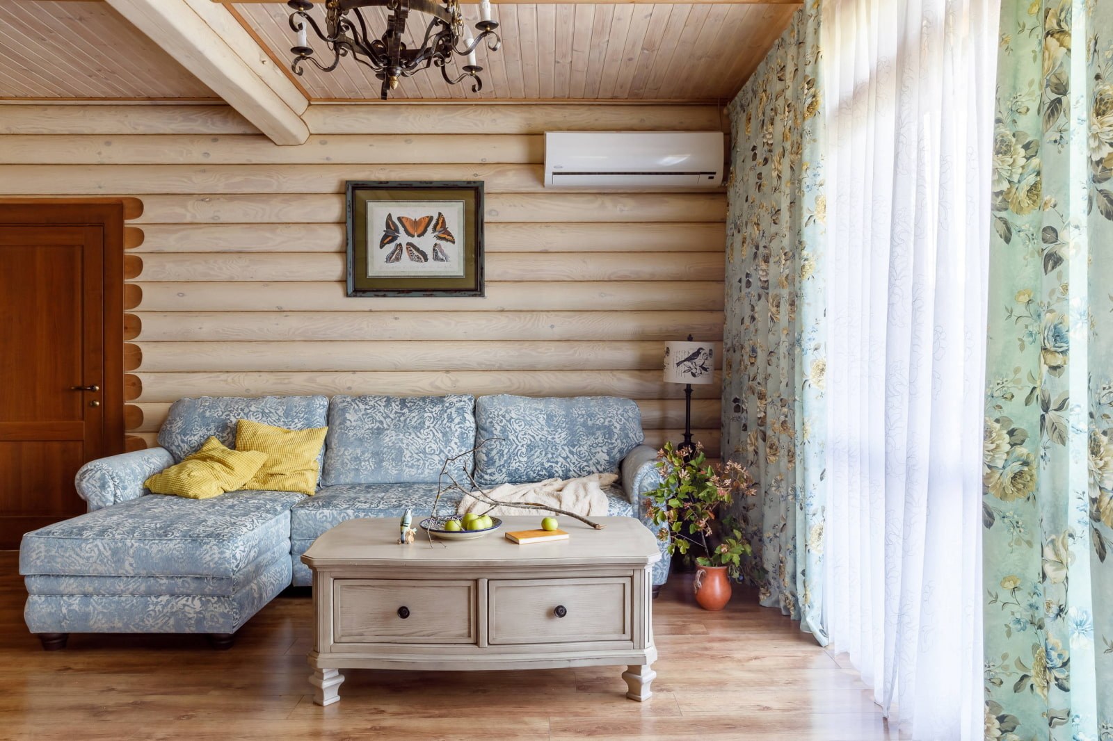 Гостиная Прованс в доме из бруса