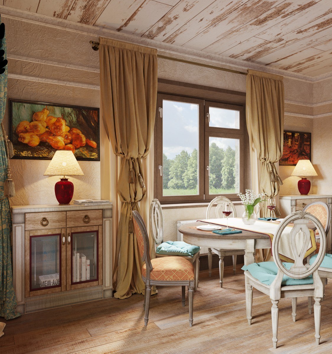 Шторы в загородном доме в стиле Прованс