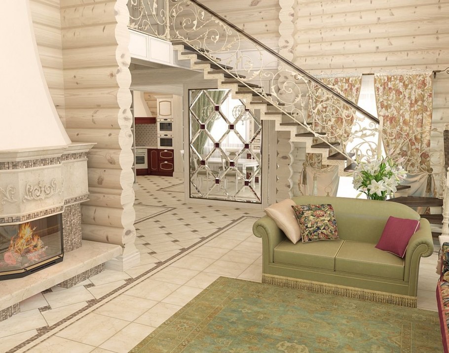Интерьер дома из клееного бруса в стиле Прованс