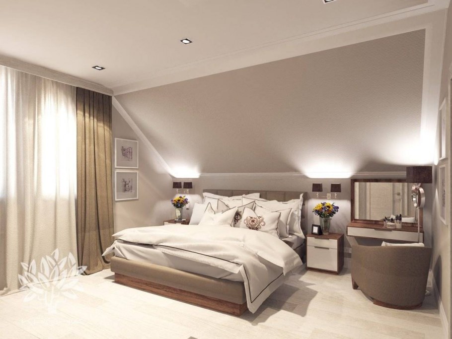 Интерьер мансардной спальни