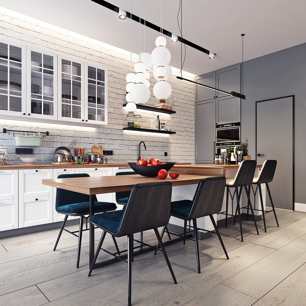 Интерьер кухни Скандинавский стиль Минимализм в черных цветах