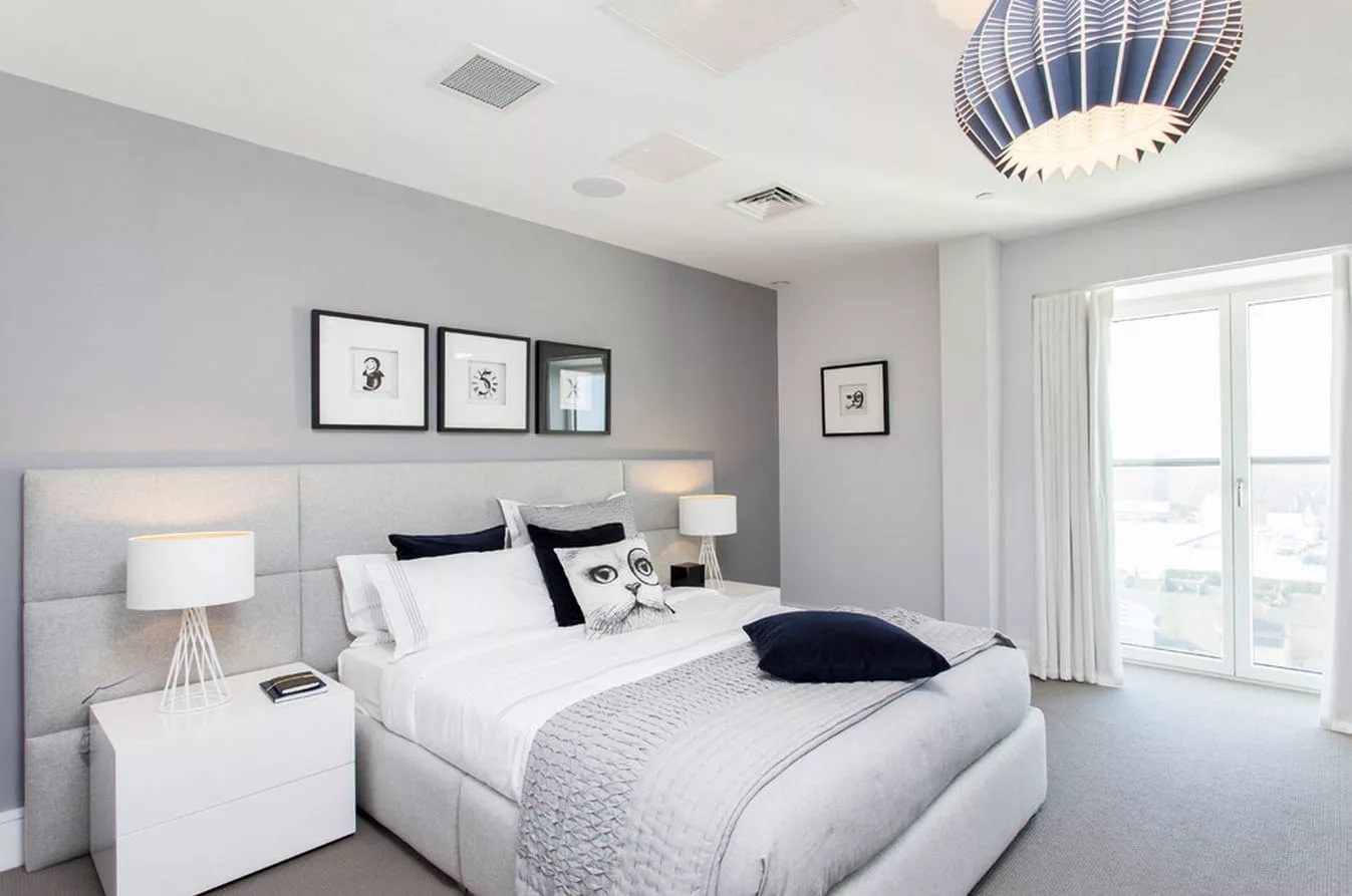 Спальня в светло серых тонах