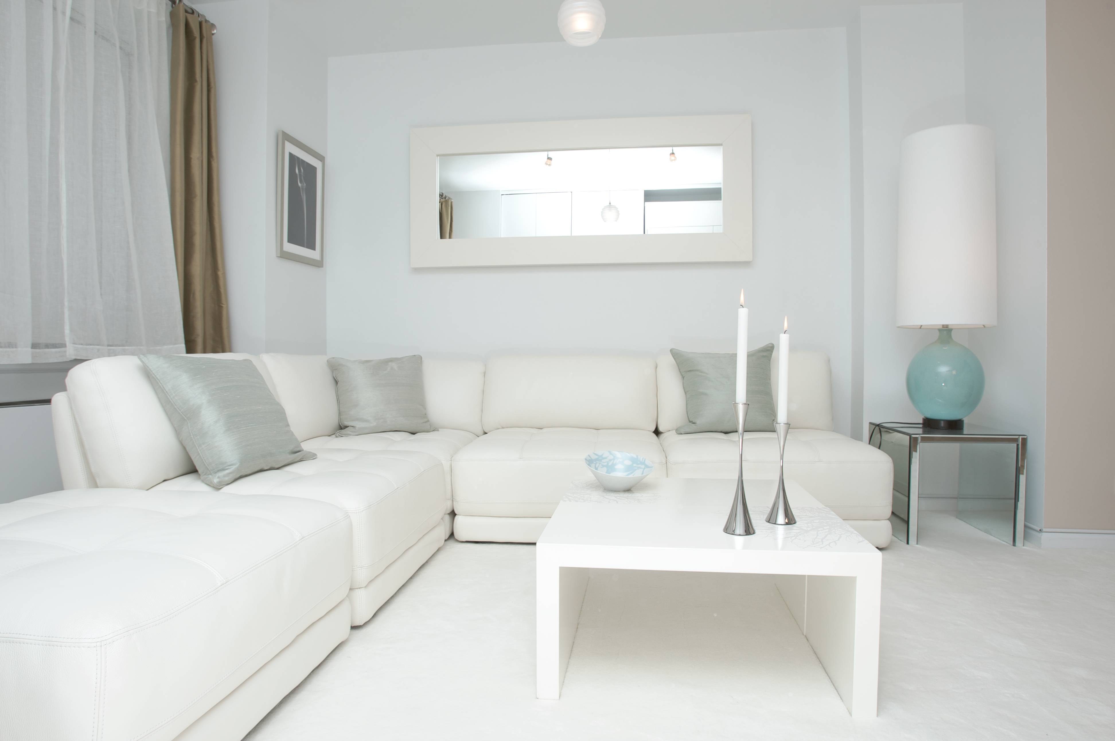Гостиная с белыми стенами
