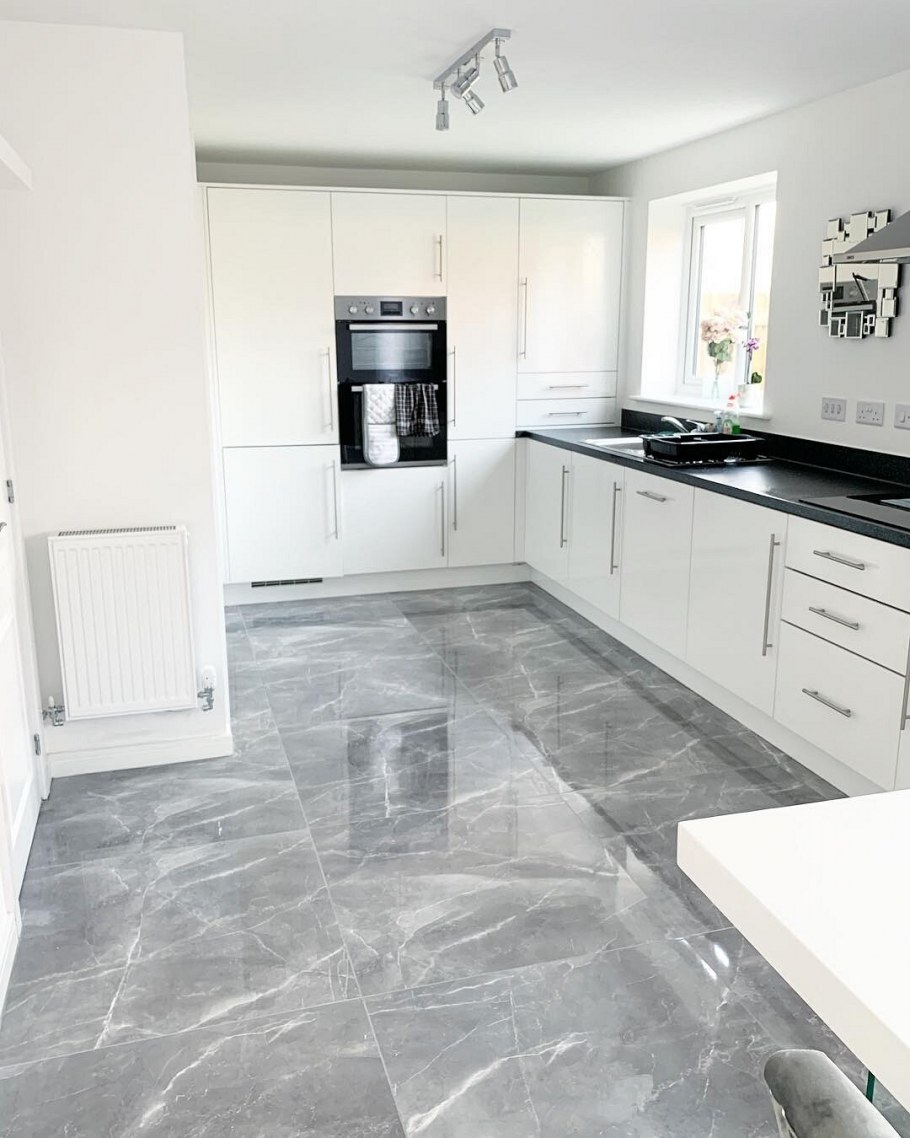 Кухня с мраморным полом