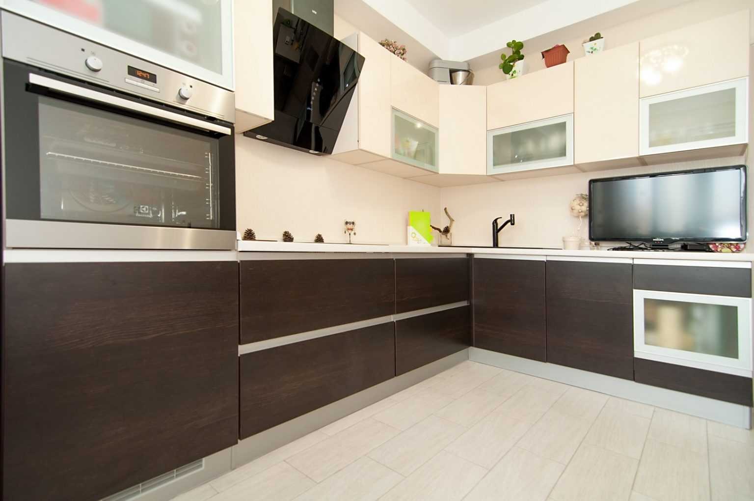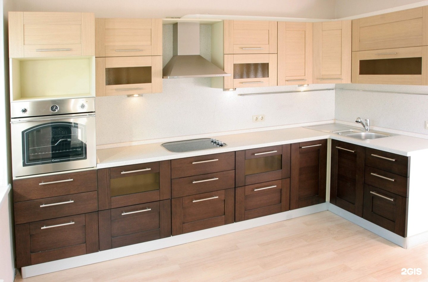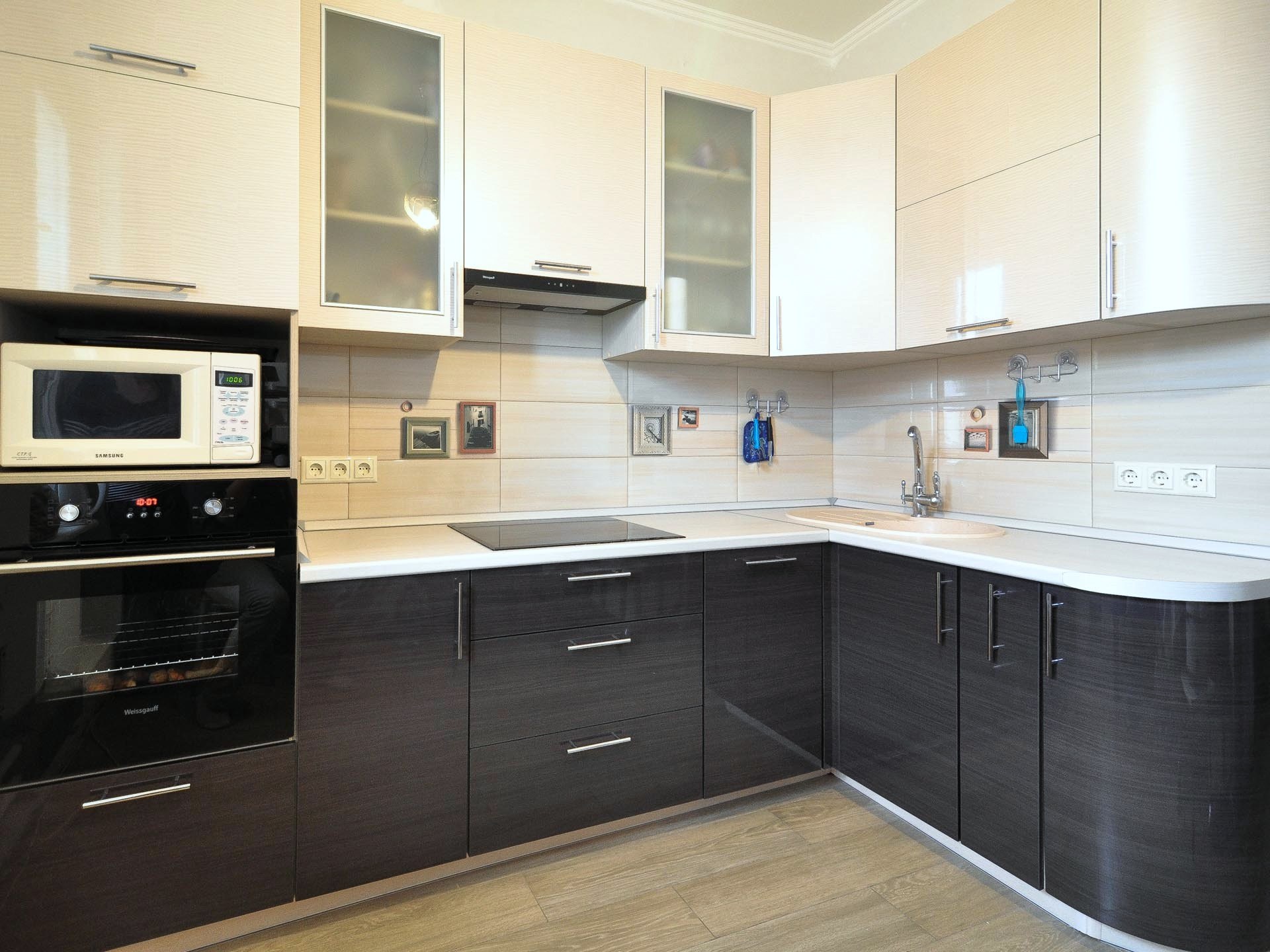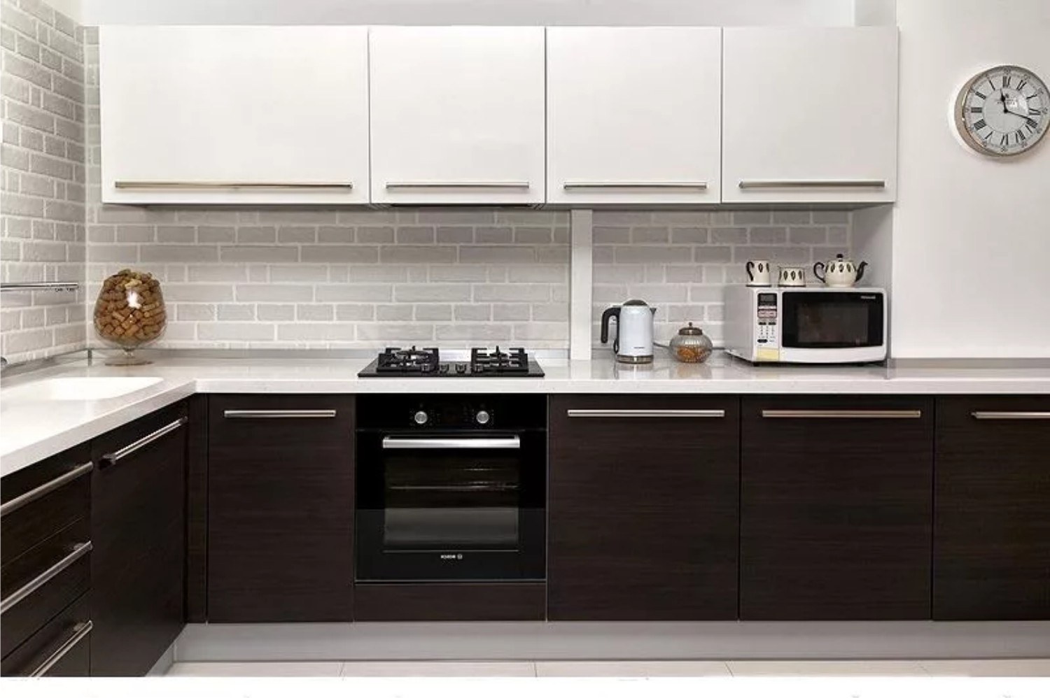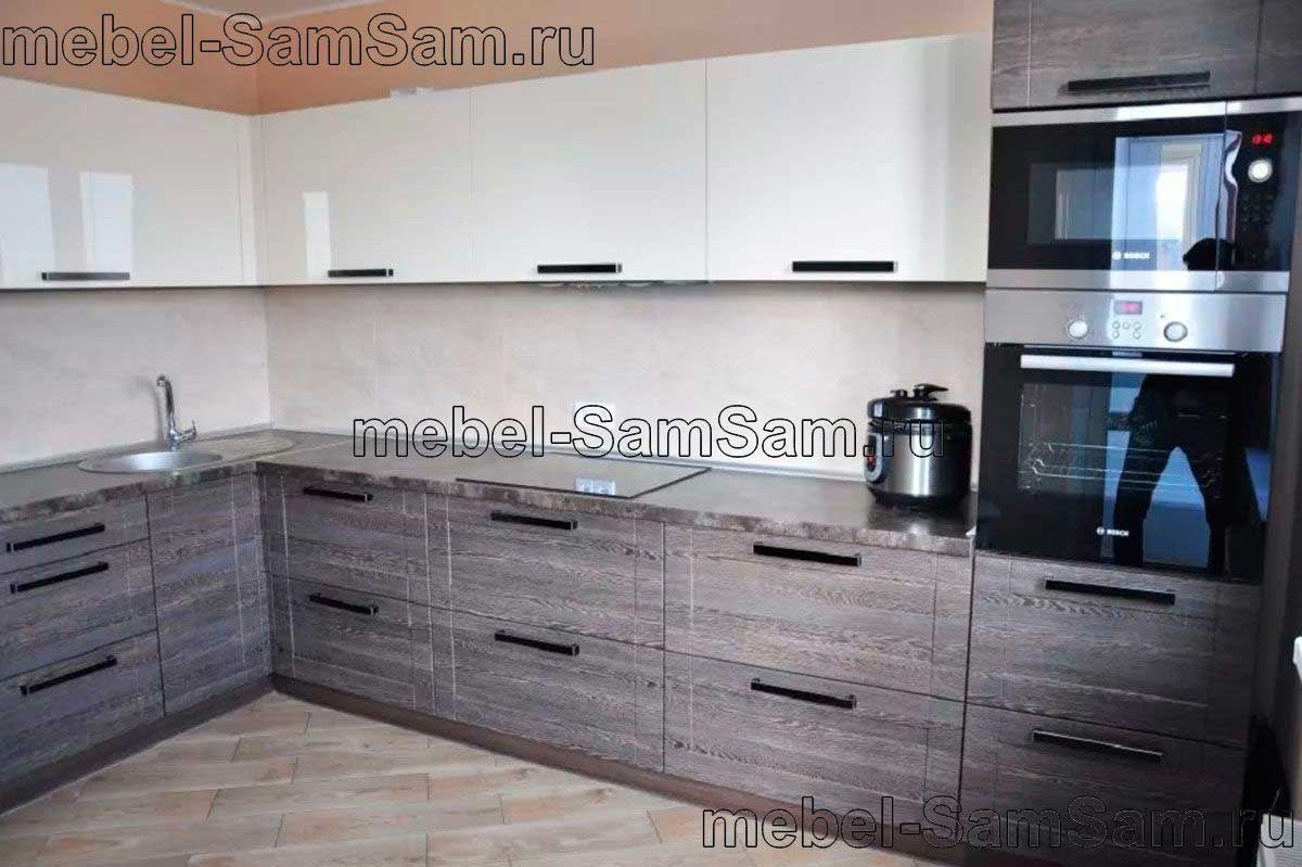 Комбинированный кухонный гарнитур светлый верх темный низ